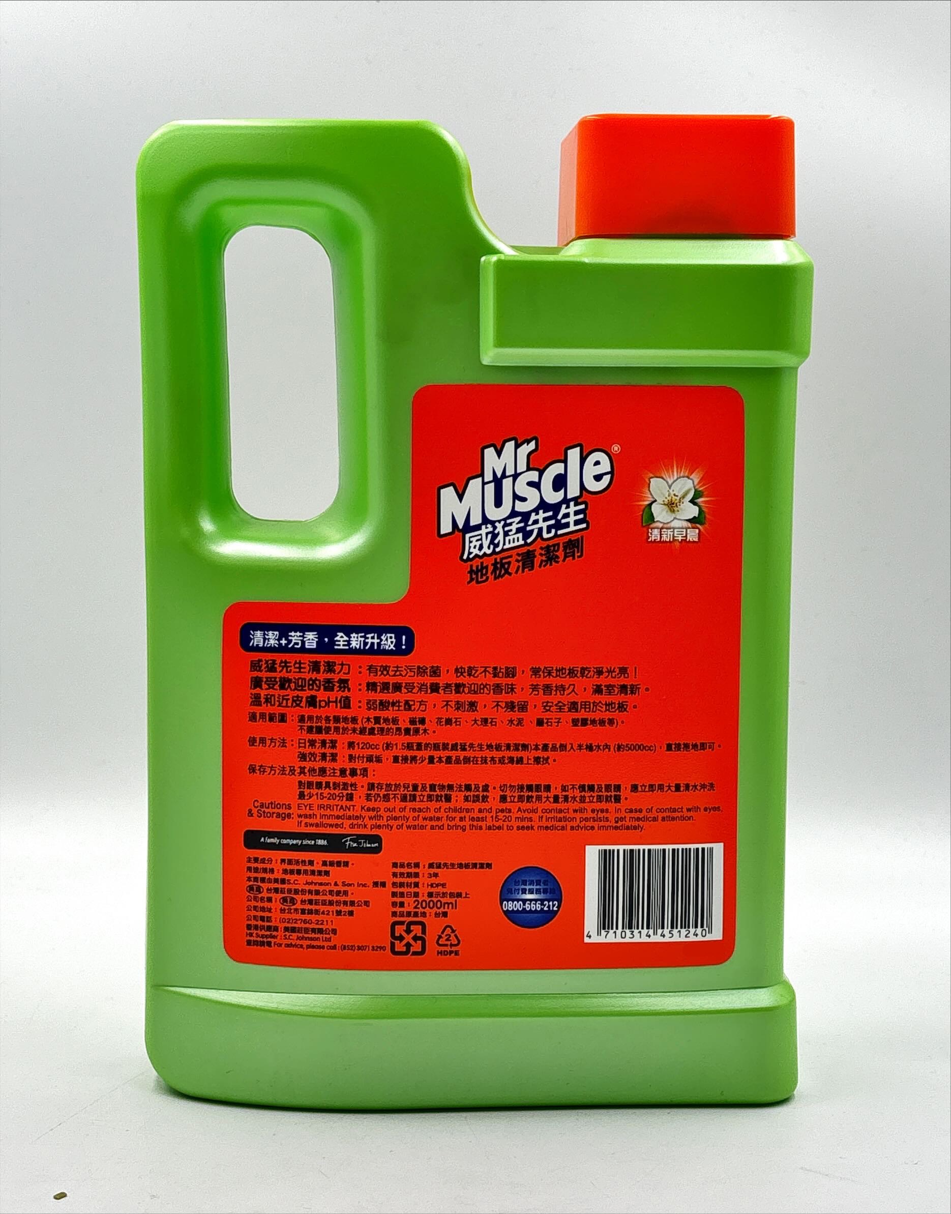 Mr Muscle 威猛先生地板清潔劑清新早晨2000ml,為您的地板帶來清新潔淨的體驗。這款液態地板清潔劑能有效去除地板上的污垢和細菌,讓您的居家環境更加衛生。清新早晨的香味,能讓您在清潔的同時,享受愉悅的香氛,營造舒適的居家氛圍。適用於各種地板表面,使用後快乾不黏膩,讓地板常保乾淨光亮。每瓶容量2公升,用量持久,是您清潔地板的最佳選擇。