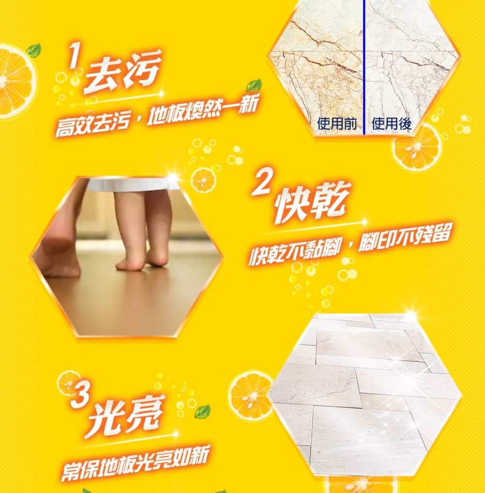 - - 獨特配方讓地板快速乾燥,省時省力,打掃後立即享受乾淨清爽的空間,非常方便。