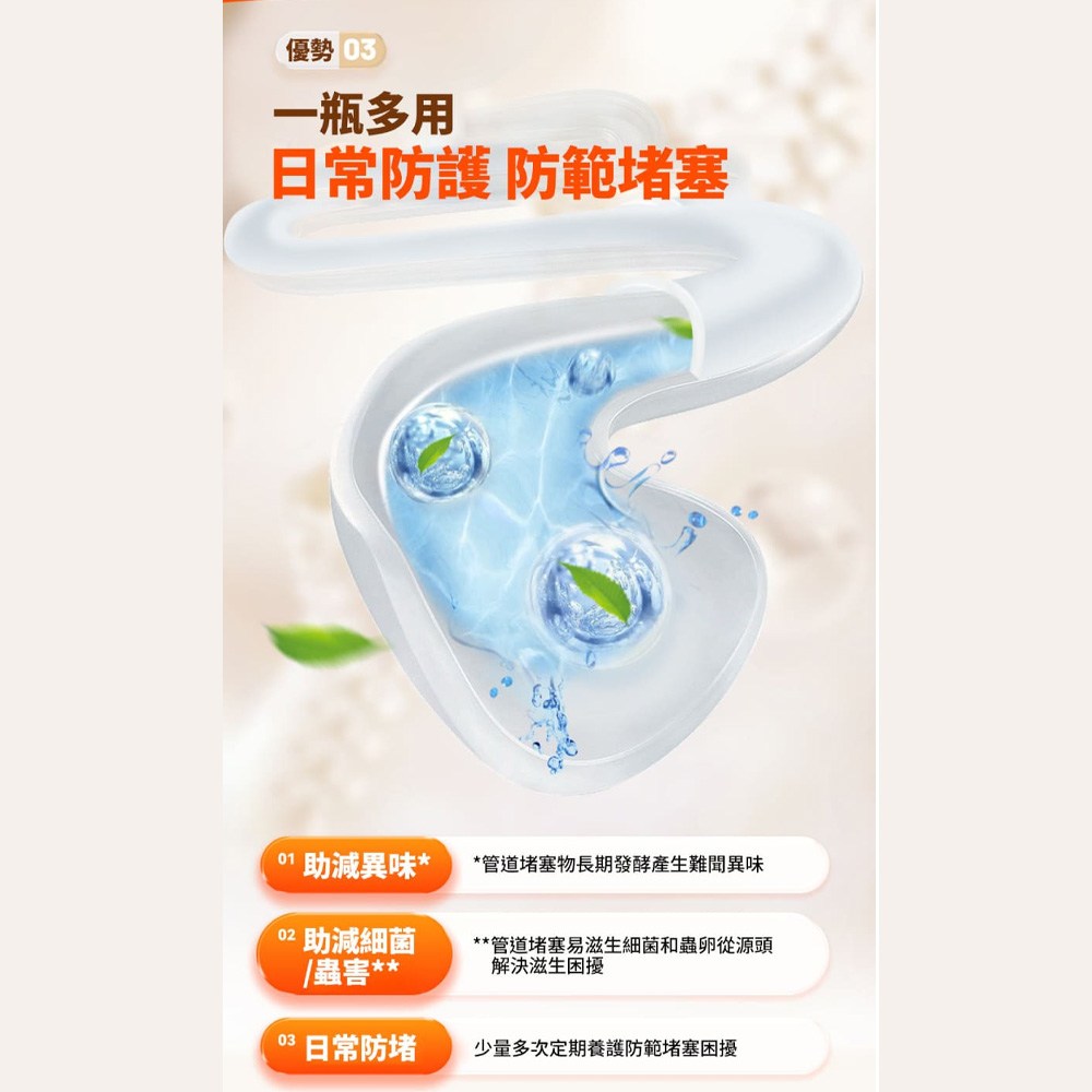 - 獨特膠狀配方能有效附著於管道壁,深入清潔難以觸及的角落,徹底清除堆積的油污。