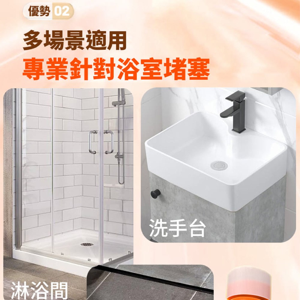 - 只需倒入適量疏通膠,靜待15分鐘,再用清水沖洗,操作簡單方便,省時省力,輕鬆搞定。