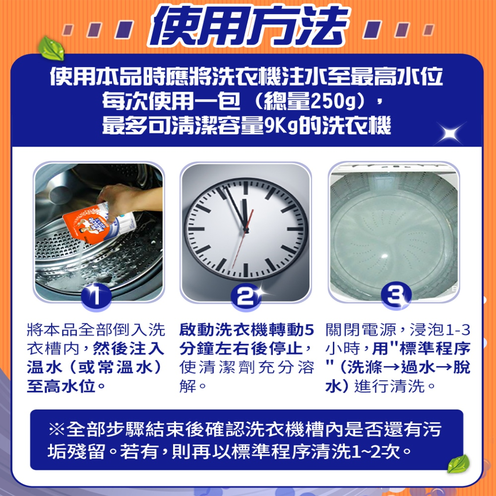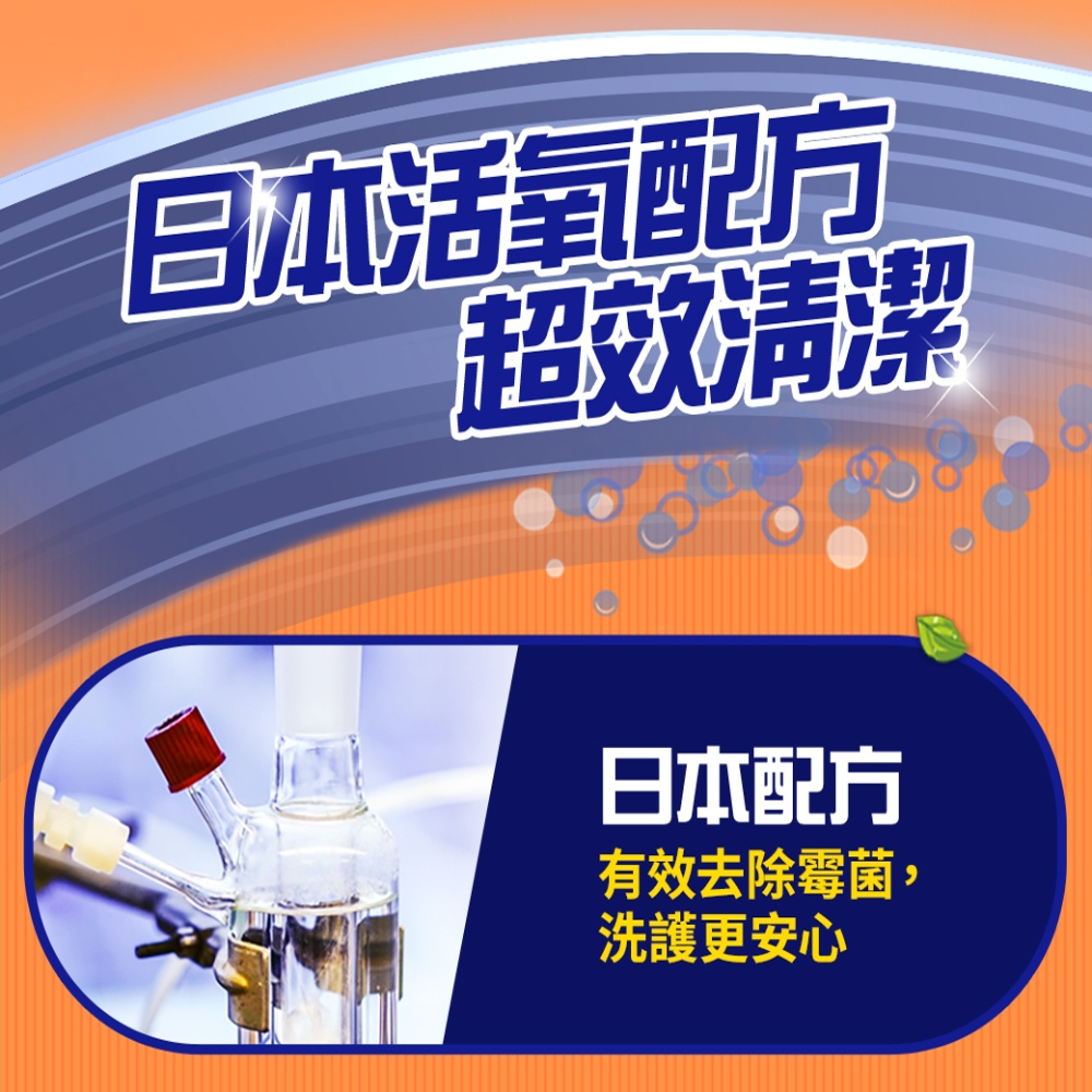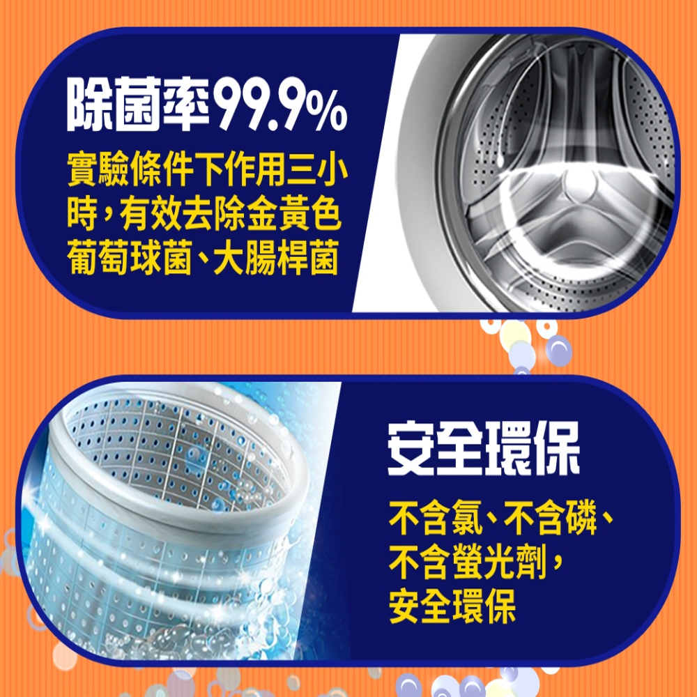 - 獨特活性氧配方,能徹底瓦解洗衣機內的頑固污漬,讓您的衣物洗得更乾淨。