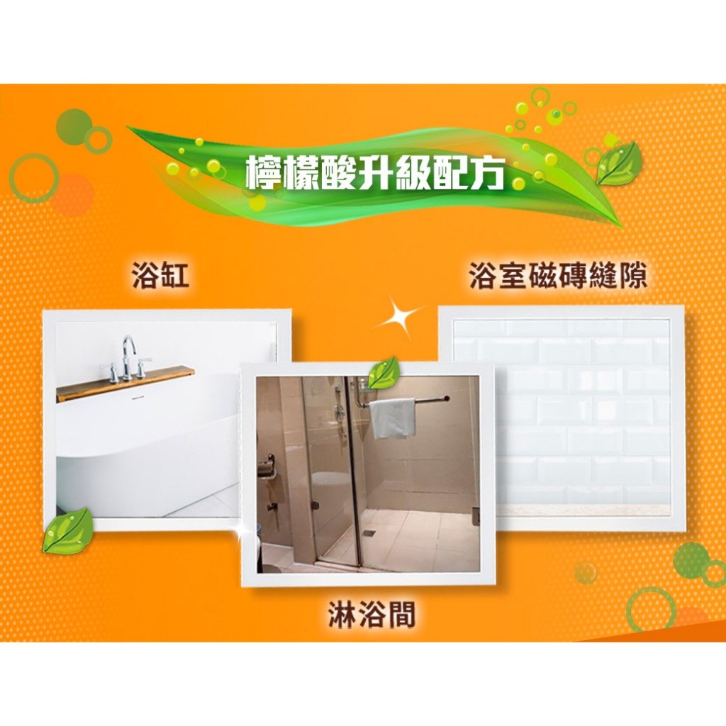 - 有效去除磁磚、玻璃上的水垢,恢復光亮如新,讓浴室空間更加明亮舒適。