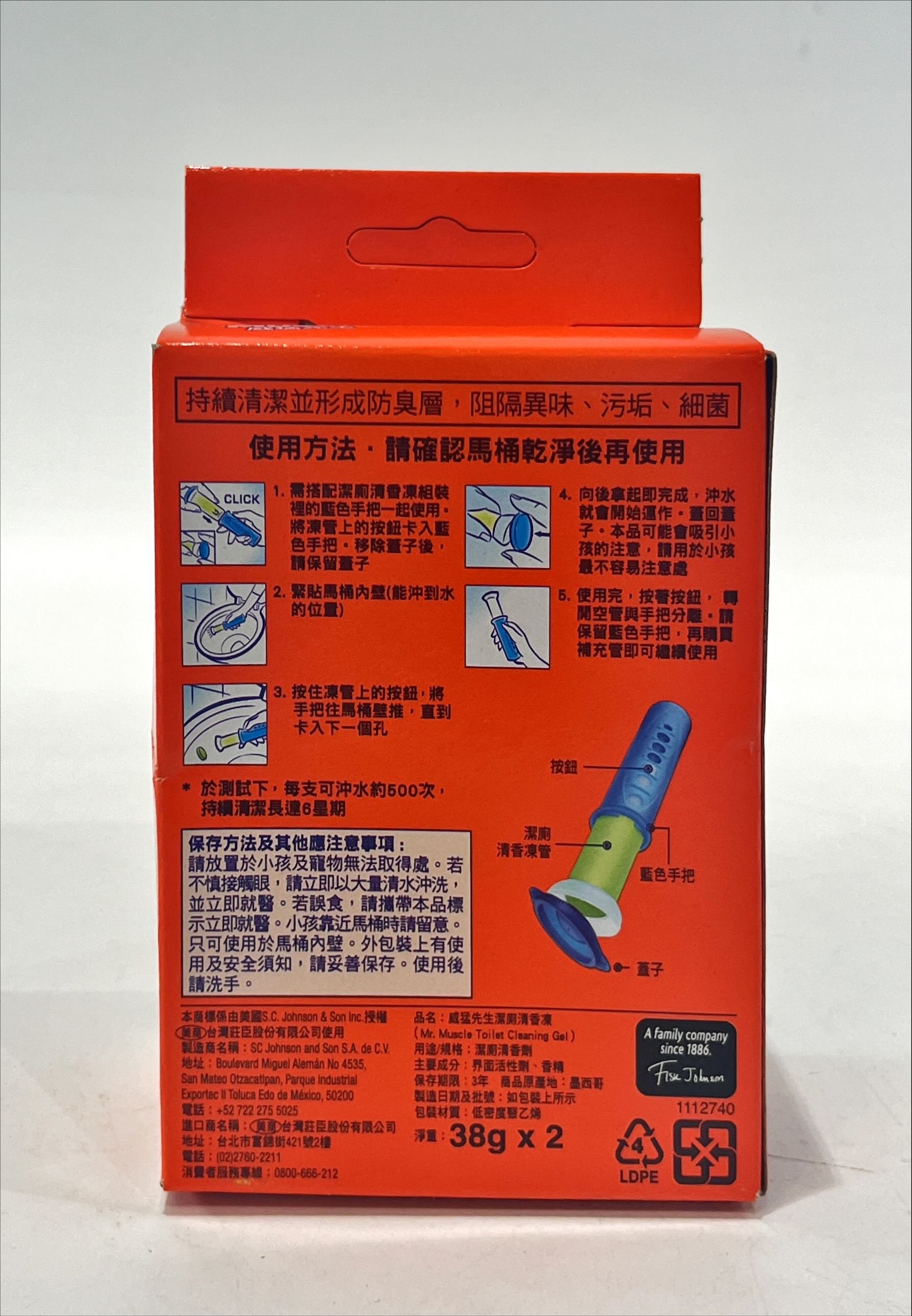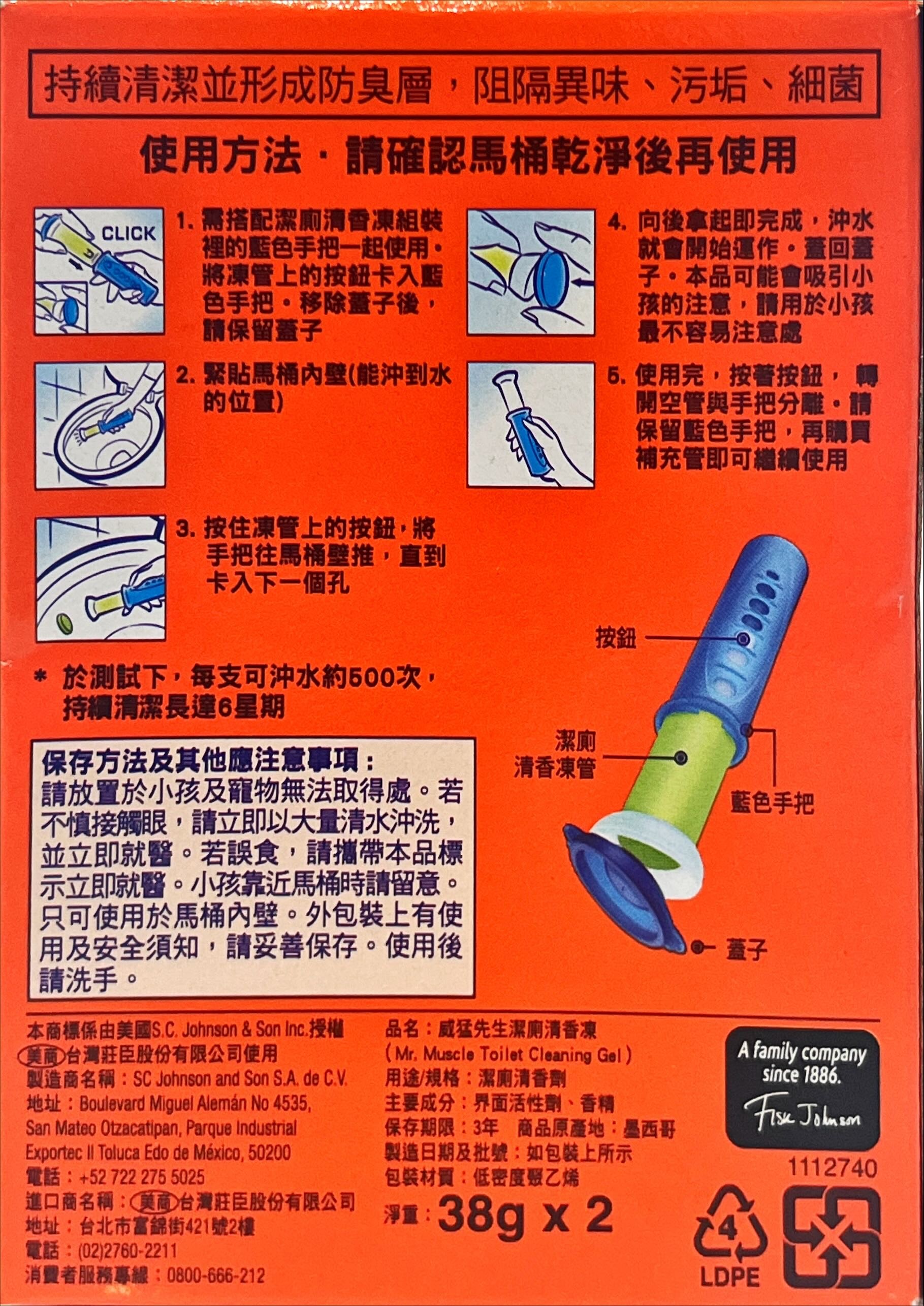 Mr Muscle 威猛先生潔廁清香凍補充管,為您的馬桶帶來持久的清新與潔淨。這款檸檬香味的凝膠補充管,每次沖水都能釋放清潔泡沫,有效去除異味,讓您的廁所隨時保持清新宜人。獨特的防污膜技術,讓馬桶持久潔淨光亮。每管清香凍可沖水約500次,持續清潔長達6星期,讓您輕鬆維持廁所的衛生與舒適。使用簡單方便,只需將補充管安裝至原有的藍色手把上即可。