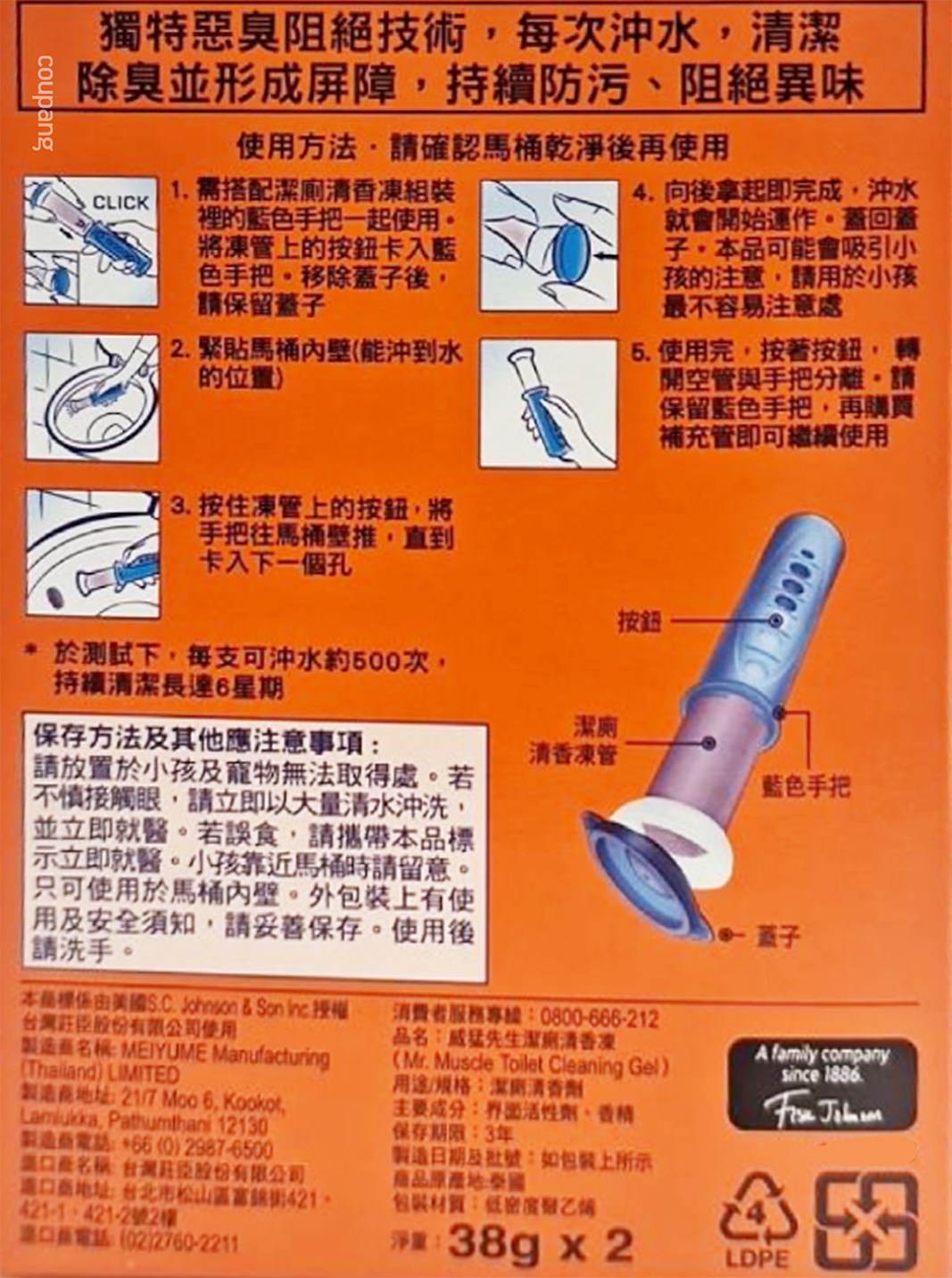- - 清香凍能有效去除異味,讓廁所隨時保持清新潔淨的氣味。
