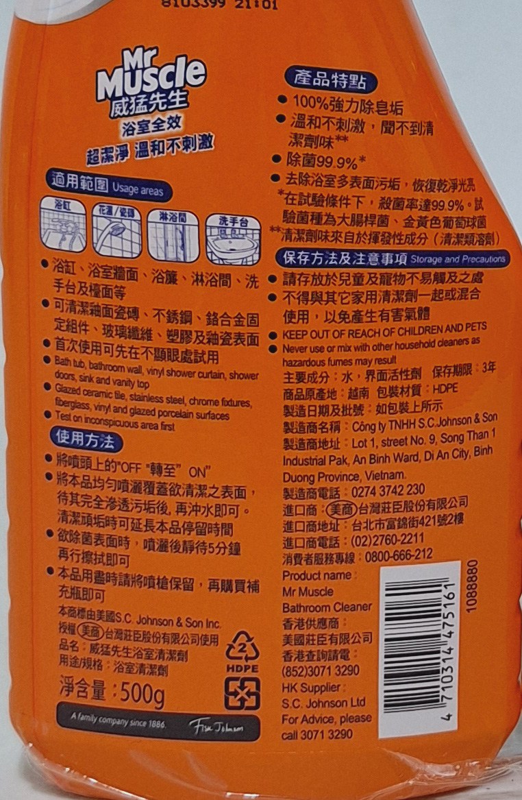 - 威猛先生浴室清潔劑,輕鬆噴灑即可清潔浴室各處,省時省力,讓您享受更多悠閒時光。