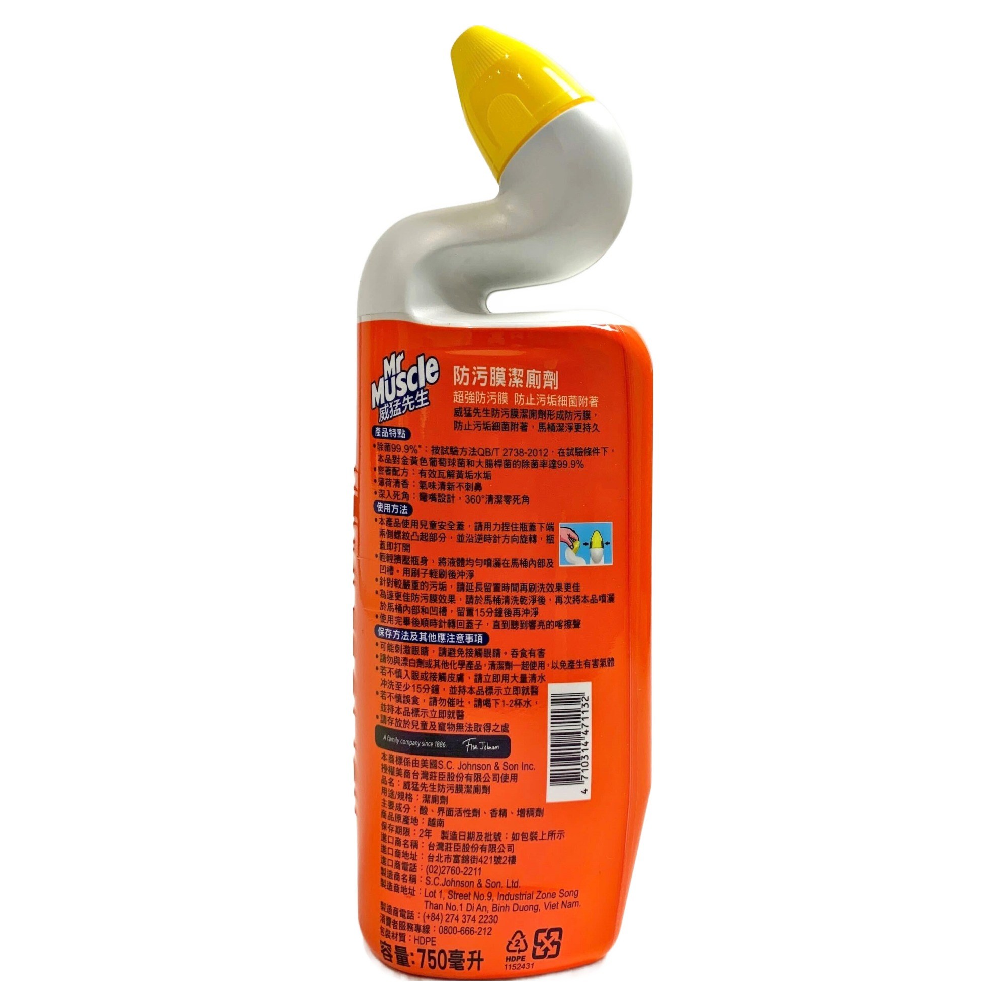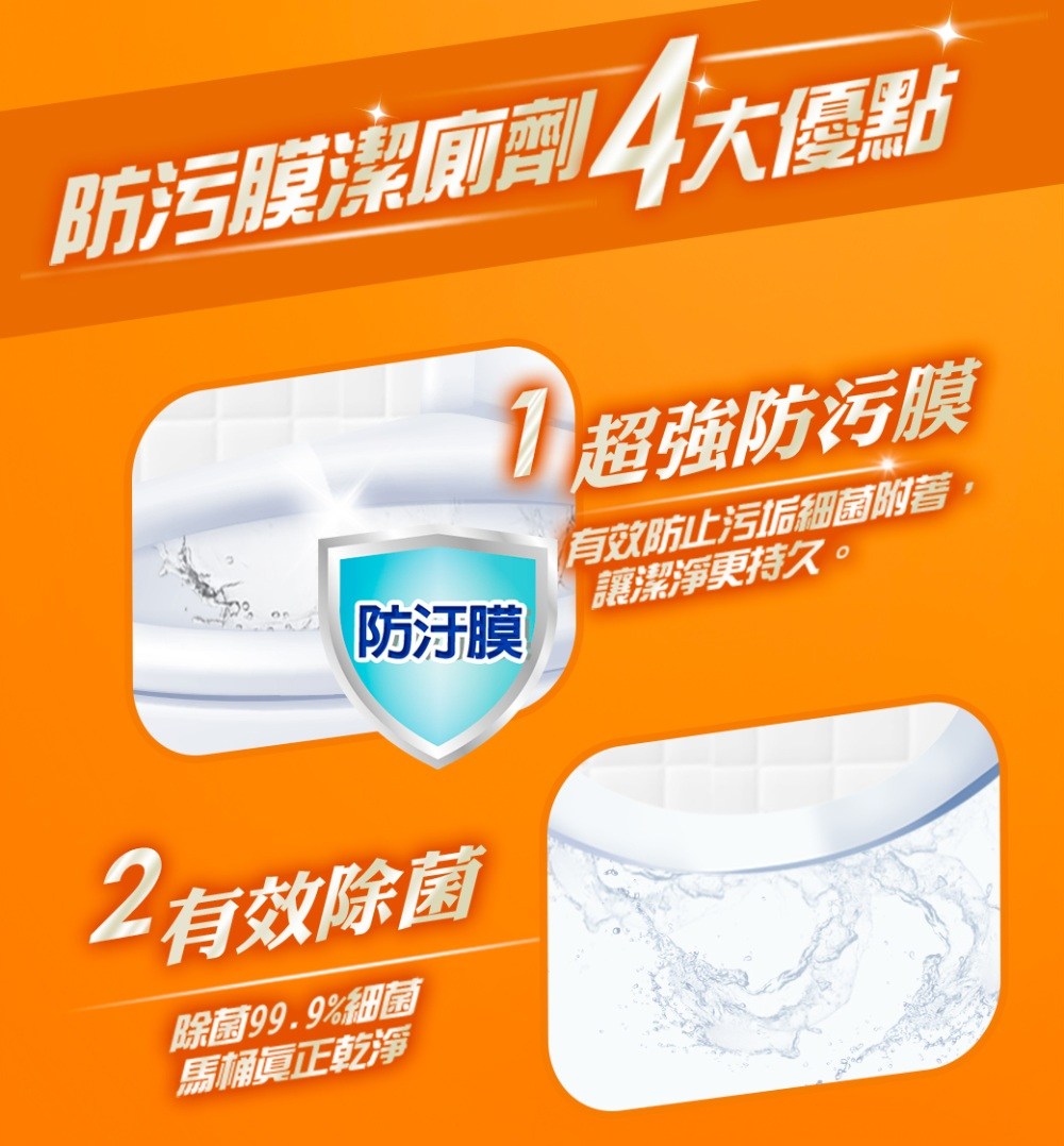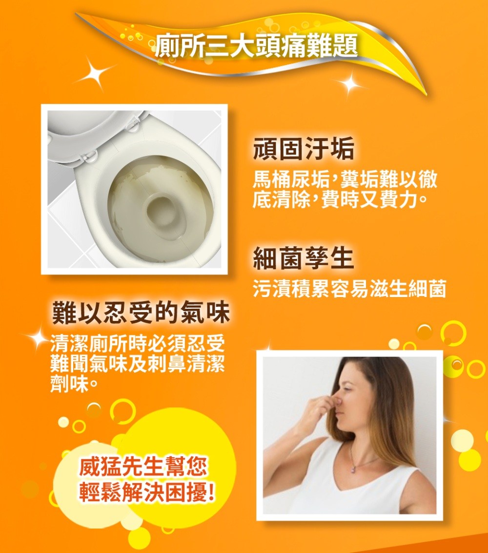 威猛先生防污膜潔廁劑,獨特防污膜配方,讓您的馬桶持久潔淨。其深入清潔配方,能徹底清潔馬桶凹槽等死角,讓馬桶煥然一新。本產品經實驗證明,能有效殺滅99.9%的細菌,讓您安心使用。使用方法簡單,只需將清潔劑均勻噴灑在馬桶內部及凹槽,用刷子輕輕刷洗後沖淨即可。定期使用,保持馬桶清潔衛生。