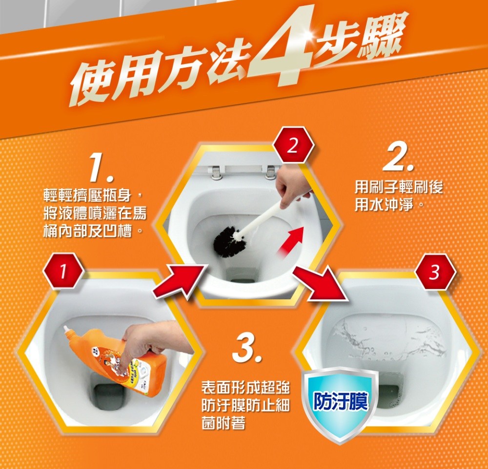 - 只需輕輕一噴,無需費力刷洗,即可達到清潔效果,讓清潔馬桶變得輕鬆簡單。