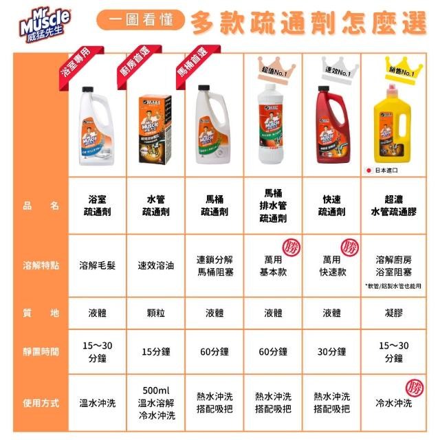 - 威猛先生疏通劑,快速溶解馬桶堵塞物,恢復暢通無阻的排水體驗。