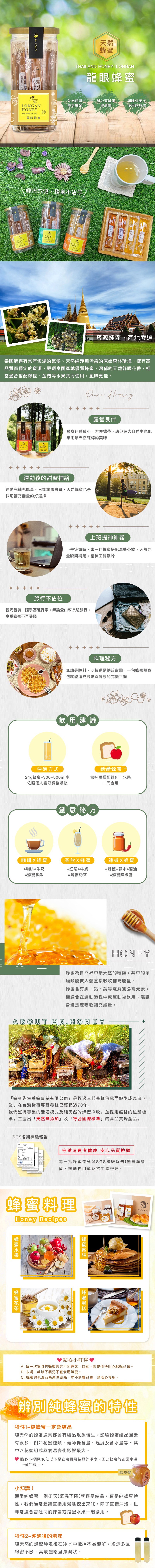 品嚐來自泰國的純正龍眼花蜜。這款龍眼蜂蜜隨身包,每罐包含10條24克的獨立包裝,方便您隨時隨地享受這份甜蜜滋味。100%純蜂蜜,無任何人工添加,保留了蜂蜜最原始的營養與風味。無論是搭配早餐、沖泡飲品,都是您的健康首選。獨立包裝設計,不僅方便攜帶,更能確保蜂蜜的新鮮度,讓您隨時都能品嚐到最佳品質的龍眼蜂蜜。