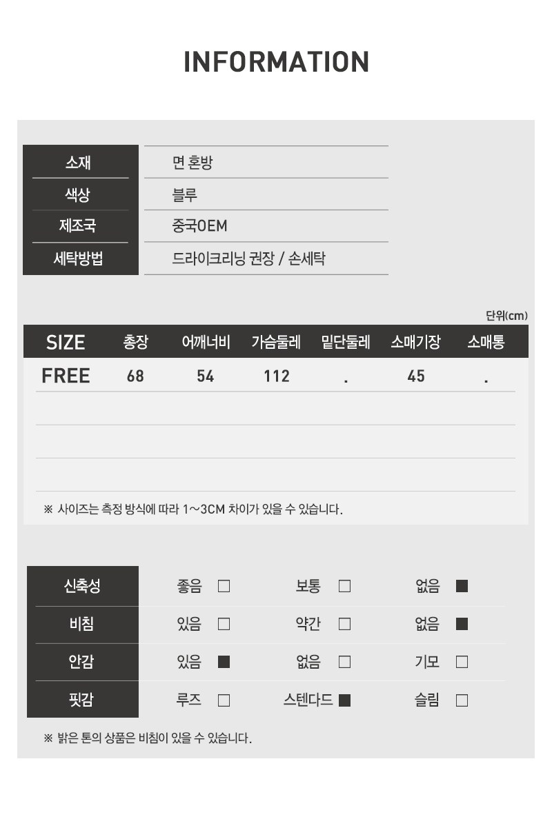 - 上衣尺寸: 女款 FREE (單一尺寸)
