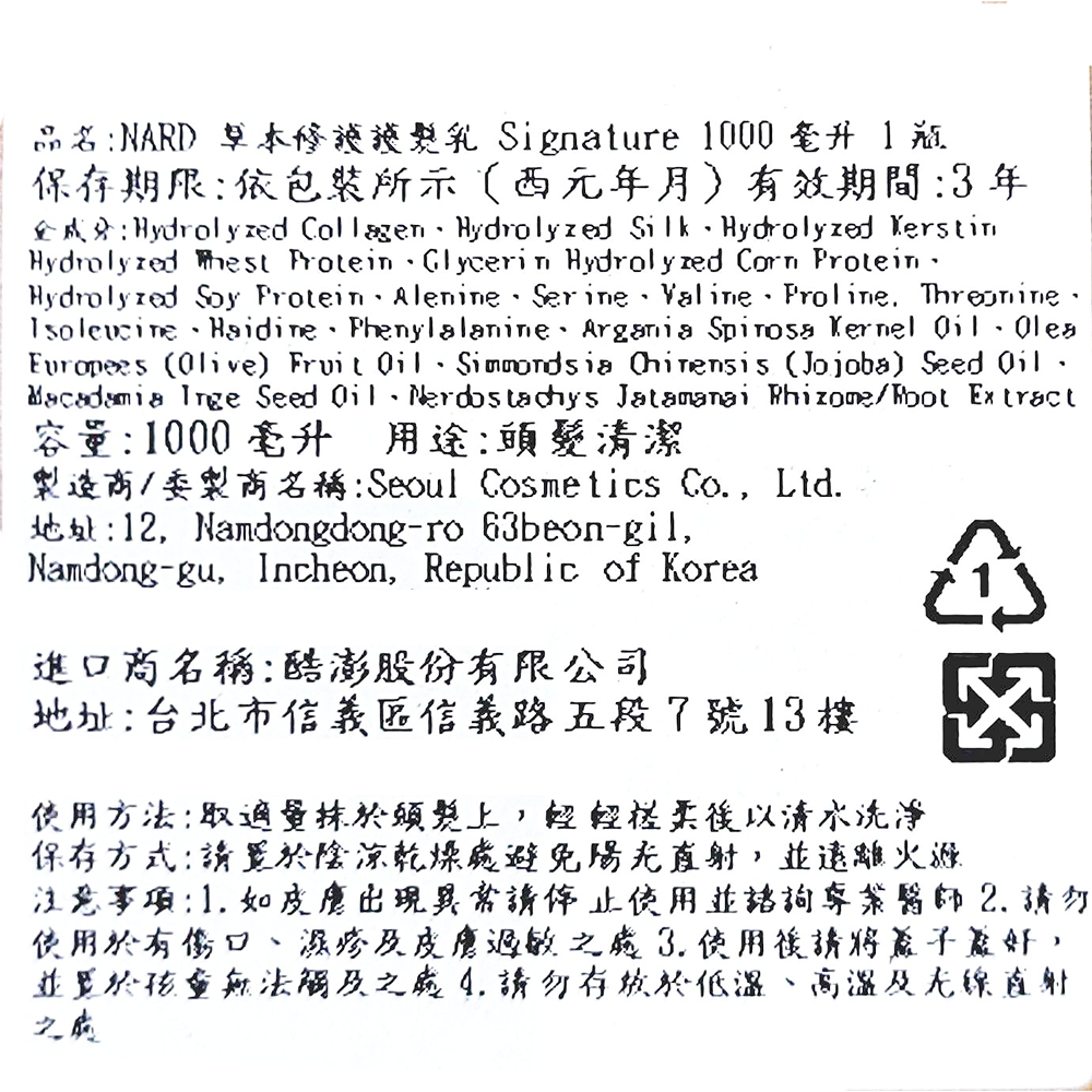 Nard 草本修護護髮乳,源自喜馬拉雅草本精華。這款Signature配方蘊含豐富的蛋白質和胺基酸,能深層滋養髮絲,改善因染燙造成的損傷,使秀髮恢復柔順光澤。1000ml大容量,適合全家使用,讓您在家也能享受專業級的護髮體驗。使用後,秀髮將散發淡淡草本清香,帶來清新舒適的感受。給您的秀髮最溫柔的呵護,重現健康亮麗。