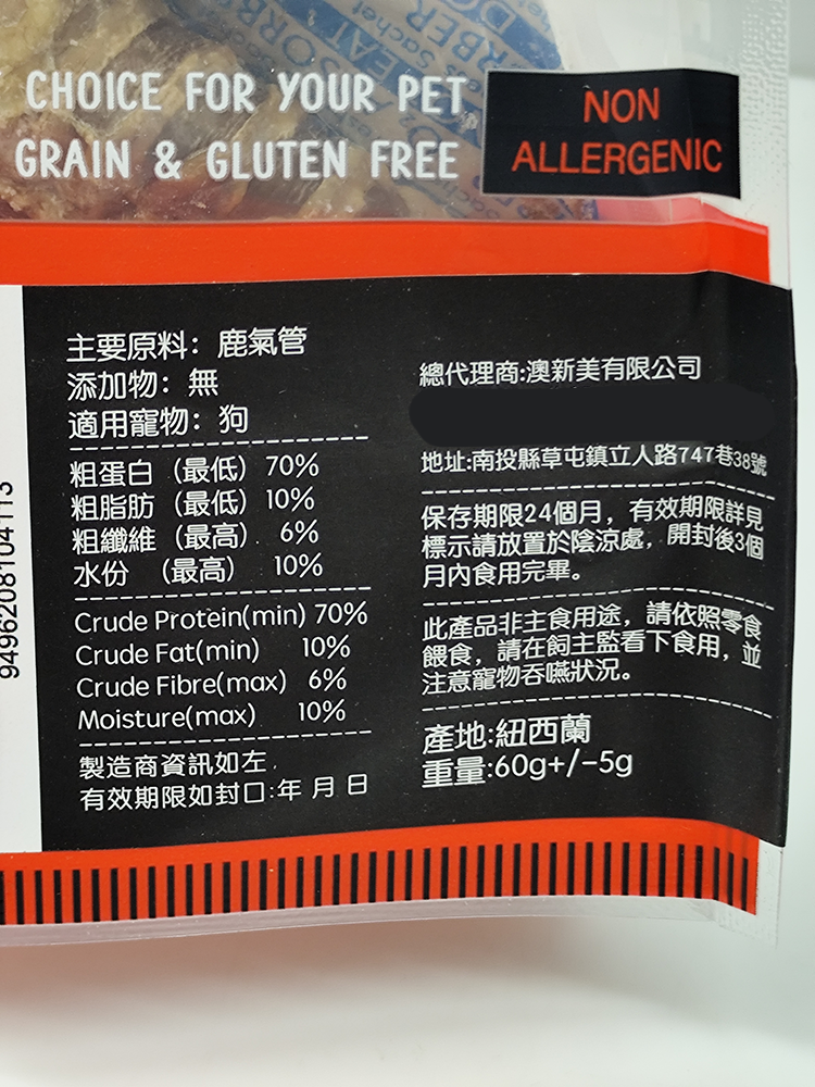 - 飼料/零食主原料: 鹿氣管