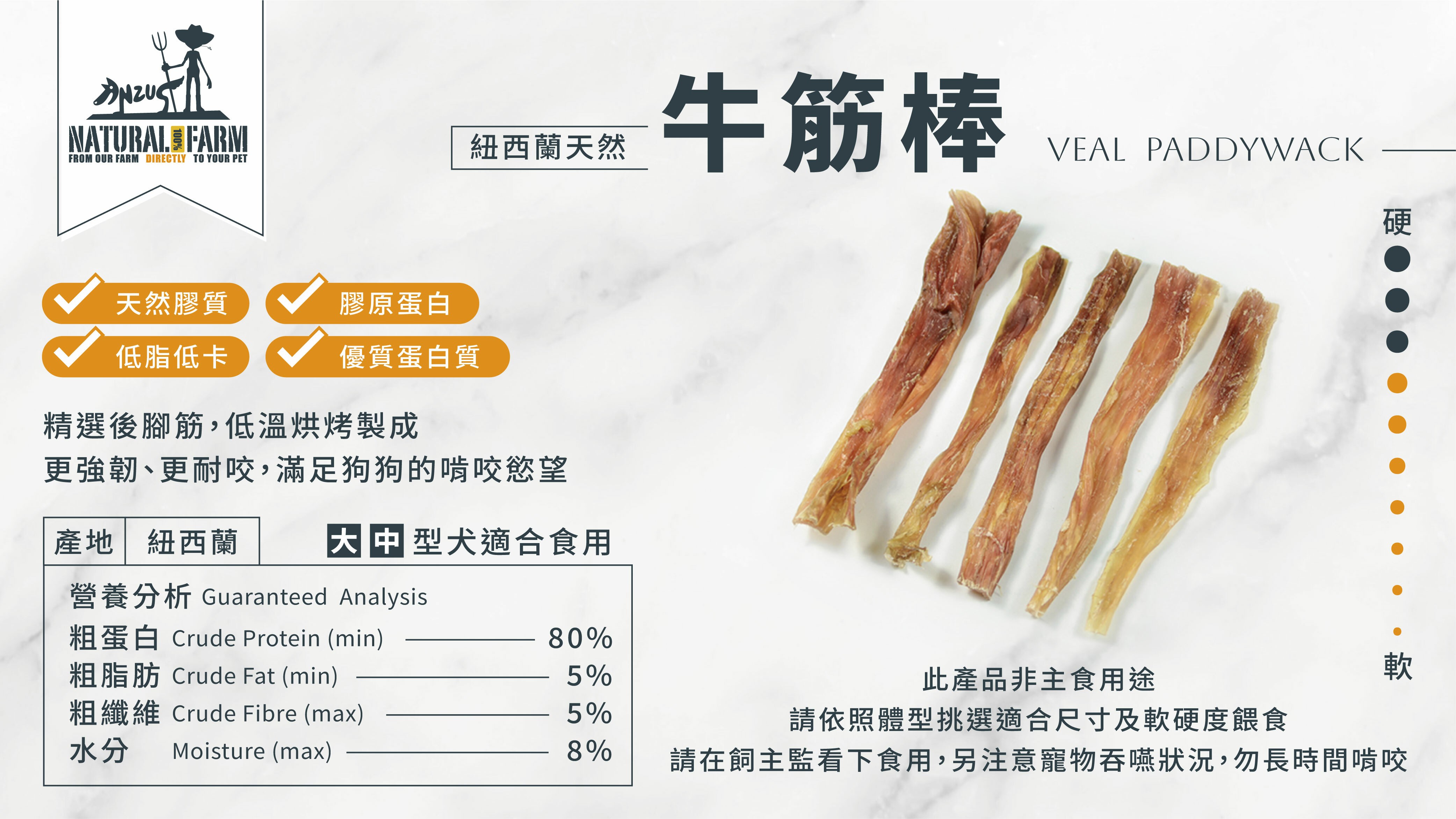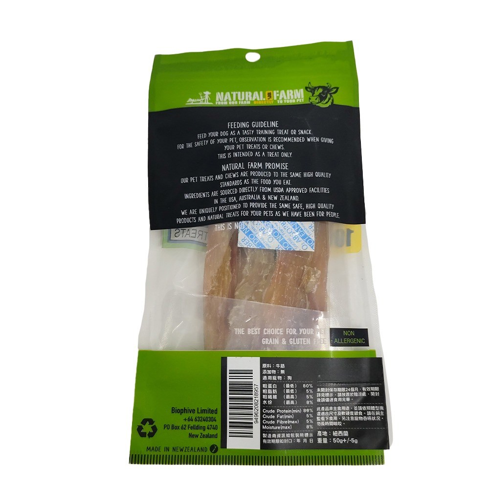NATURAL FARM 自然牧場紐西蘭天然牛筋棒,是您愛犬的最佳零食選擇。這款小尺寸、50g包裝的牛筋棒,無添加人工色素或香料,確保您的寵物享受到最純粹的美味。牛筋富含優質蛋白質,有助於維持狗狗的肌肉健康,同時耐嚼的特性也能幫助清潔牙齒,減少牙垢堆積。無論任何體型的狗狗,都能享受這款美味又健康的零食,讓您的愛犬在享受美味的同時,也能保持健康活力。