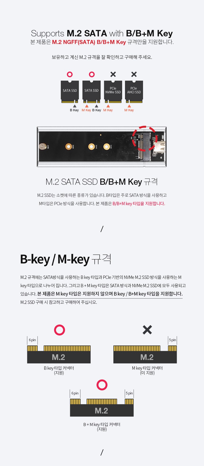 ■ 支援 B Key 和 B+M Key 規格的 M.2 SATA SSD,提供 2230/2242/2260/2280 四種尺寸的安裝孔位。