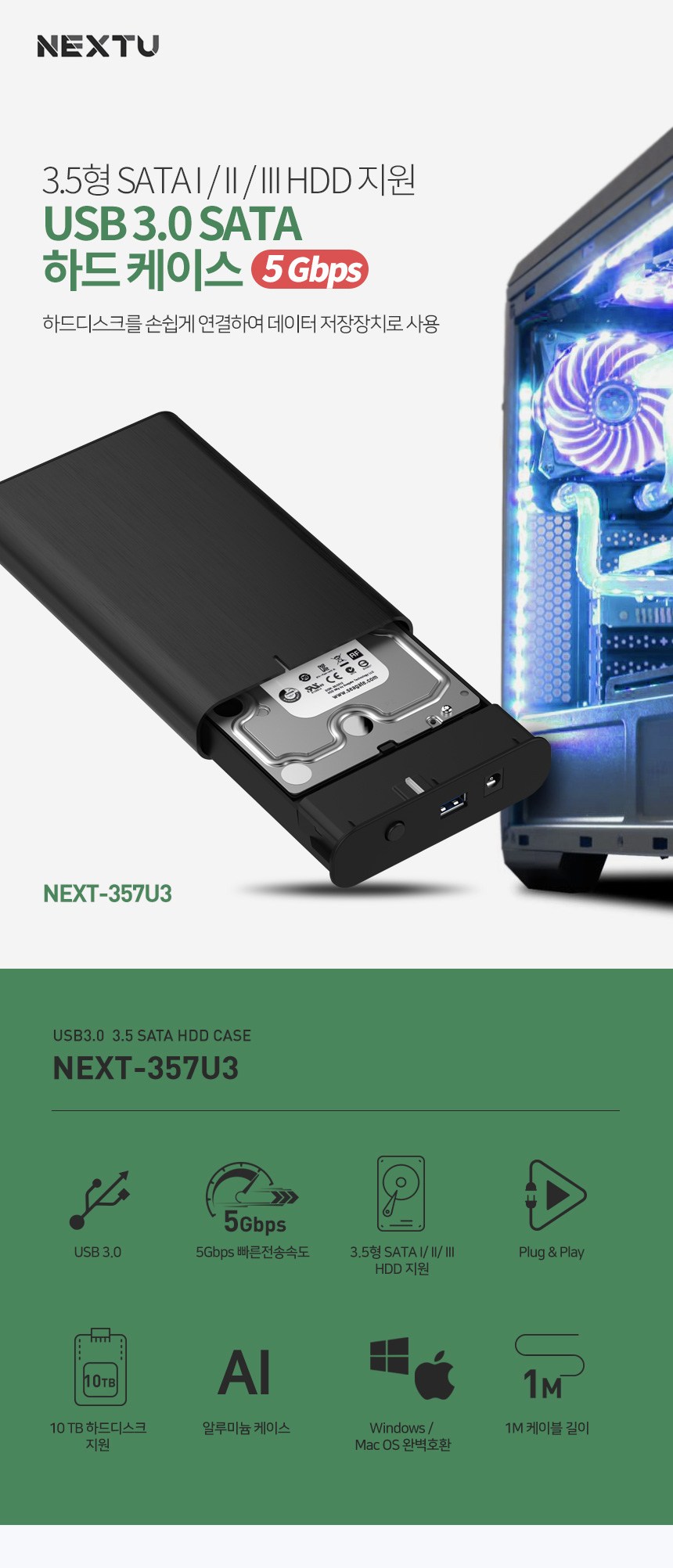 NEXT U USB3.0 SATA硬碟外接盒,讓您輕鬆將3.5吋SATA硬碟轉換為外接儲存裝置。採用USB 3.0技術,提供高達5Gbps的快速傳輸速度,大幅縮短檔案傳輸時間。鋁製外殼堅固耐用,有效散熱,確保硬碟穩定運作。支援隨插即用,無需安裝驅動程式,使用方便。此外,它還支援高達10TB的硬碟容量,滿足您大量的資料儲存需求,是您擴充儲存空間的理想選擇。