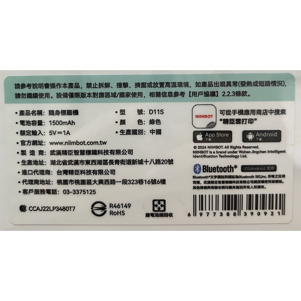 這款NIIMBOT D11S人魚漢頓綠色隨身標籤機,讓您隨時隨地輕鬆列印標籤。採用熱感應技術,無需墨水。體積小巧,寬7.5cm、高2.5cm,便於攜帶,無論是整理辦公室文件、分類居家用品,還是製作個性化禮品標籤,都能輕鬆應對。透過藍牙連接,搭配手機APP,即可編輯和列印多種樣式的黑白標籤,最大紙張尺寸為15*50mm。203dpi的光學掃描解析度,確保列印品質清晰可見。2024年8月上市,是您生活和工作上的得力助手。