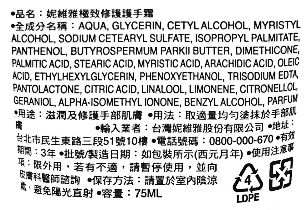 - - 妮維雅護手霜能迅速滲透肌膚,深層滋潤乾燥的手部,帶來舒適感受。