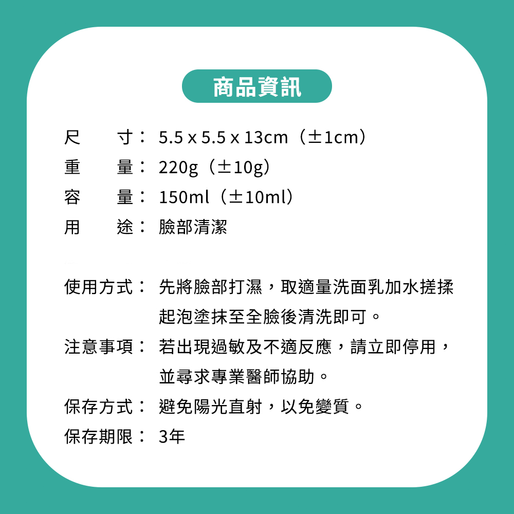 - 積雪草B5配方,溫和清潔臉部,洗後肌膚感覺清爽舒適,告別油光滿面。