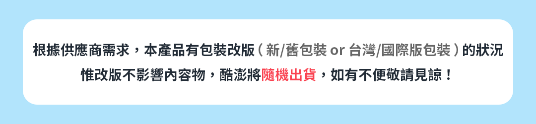 | 可申請換貨/退貨的時間 | · 若顧客改變心意,且產品不受下列任何一項換貨/退貨限制,顧客可在收到火箭速配產品後15天(WOW會員30天)內申請換貨/退貨 · 若產品內容與標示或廣告不符,或收到產品時已存在瑕疵,顧客可在收到產品起3個月內換貨/退貨(若該產品有標示賞味期限或有效期間,則必須於該賞味期限或有效期限內提出請求) · 與產品有關的一切資訊、圖片、說明及其他相關資訊,皆以火箭速配廠商提供並上傳的產品頁面為準。若發現產品缺失,敬請不吝提出詢問,酷澎線上交易平台將進行確認並立即處理 · 若使用美容產品出現問題(過敏、起紅疹、發癢、刺痛),顧客可憑診斷證明書或醫師證明(相關成本應由顧客自行負擔)申請退款 |