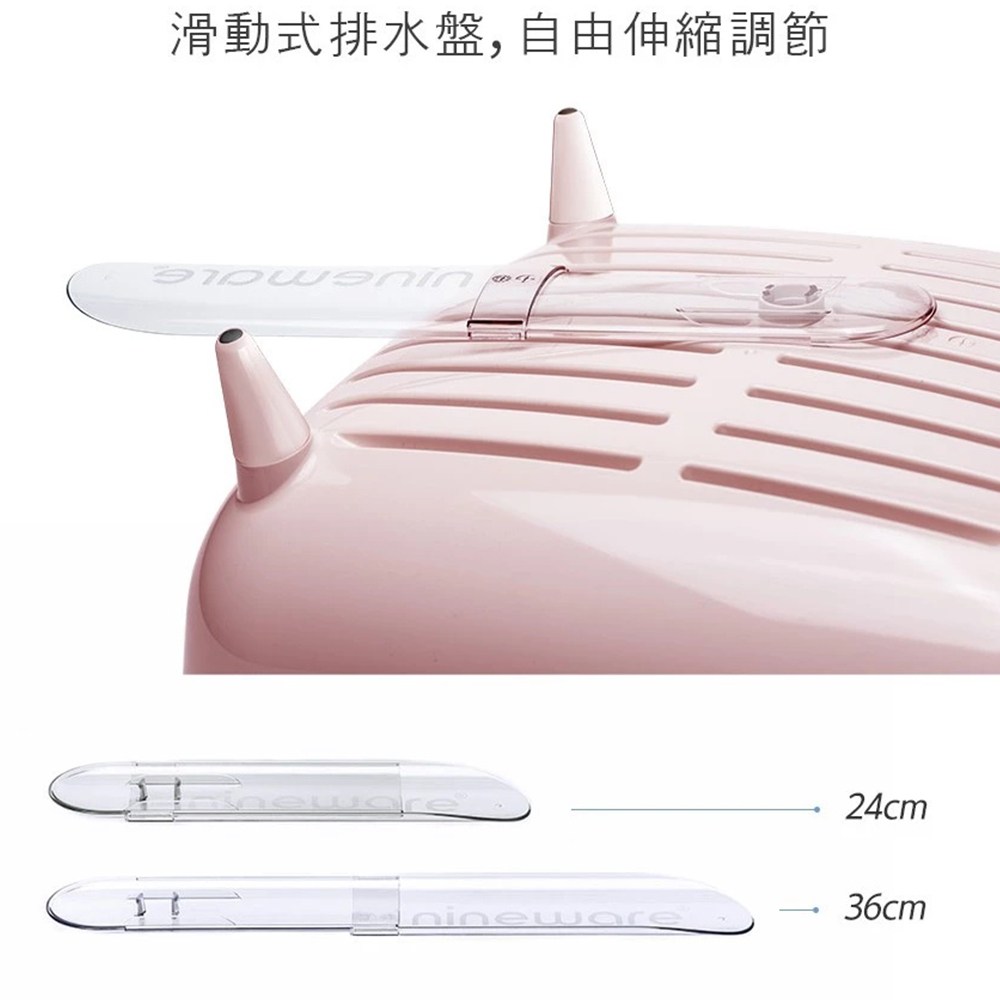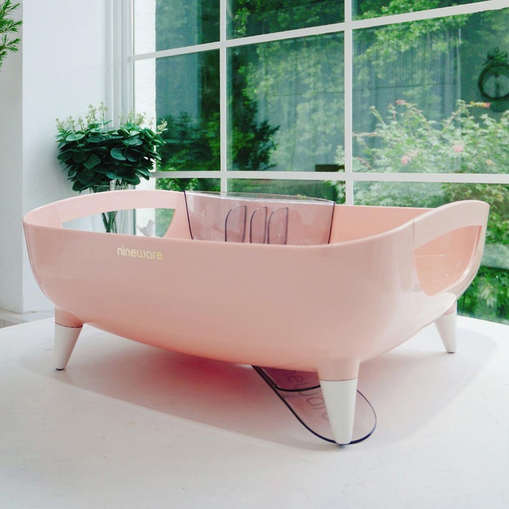 Nineware寬型餐具瀝水架以優雅的曲線設計和時尚的色彩,為您的廚房增添格調。寬版尺寸適合4~6人家庭使用,提供足夠的空間放置碗盤。可拆卸的接水盤和餐具筒設計,方便使用者根據需求調整,保持廚房整潔。流線型設計不僅美觀,還能確保排水順暢,避免積水。堅固的支腳和橡膠墊片,確保瀝水架穩固不滑動,讓您使用。