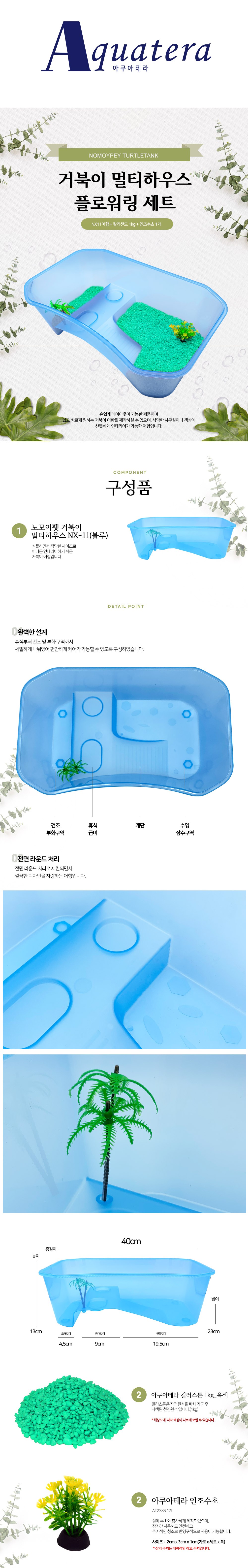 NOMOY PET多功能烏龜地板水箱套組,簡潔設計易於裝飾,無論放置在哪裡都適合。此套組包含藍色水族箱、綠松石彩色石和人造水草,方便您快速佈置烏龜的理想生活空間。水箱內部經過精心劃分,提供烏龜休息、乾燥及孵化等多個區域,確保牠們的舒適生活。正面圓角設計,時尚美觀。無論是辦公室還是書桌,都能成為一個清新的室內裝飾品。