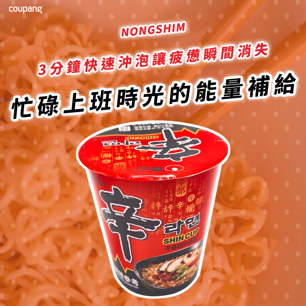- 農心辛拉麵杯麵,香菇風味濃郁,口感豐富,隨時享受道地韓國風味。