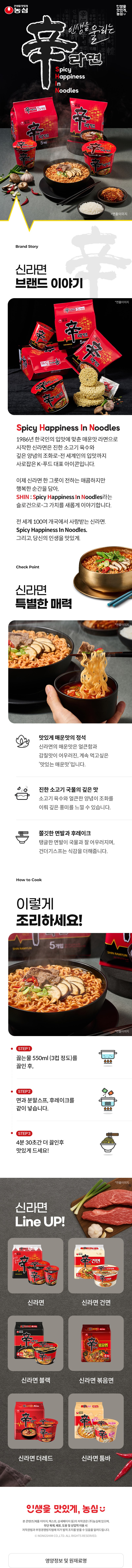 - 方便快捷的美味享受,農心辛拉麵只需簡單烹煮,即可品嚐到熱騰騰的美味拉麵,隨時滿足您的味蕾,是居家必備的美味。