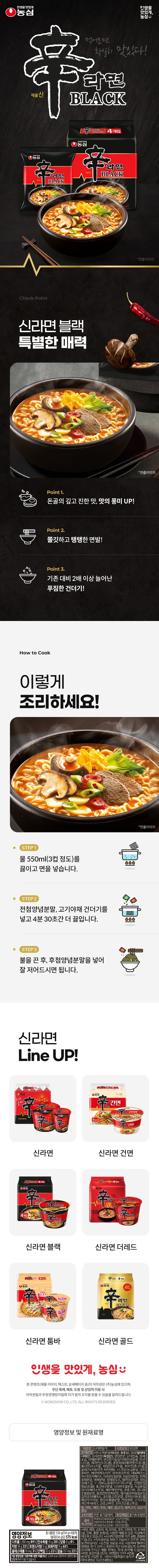 - 農心辛拉麵BLACK,方便快速,只需簡單烹煮,即可享用美味拉麵,是忙碌生活中的最佳選擇。