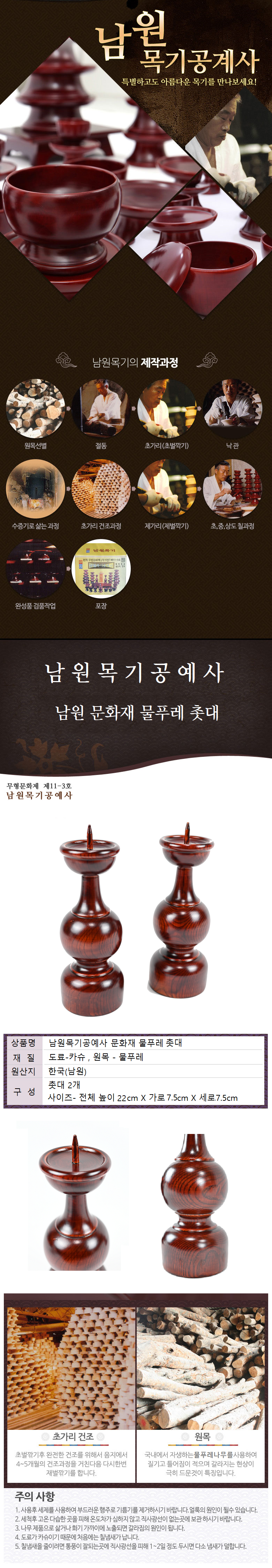 Namwonmoggi 名品南原 工藝社 國產文化財白蠟木燭臺 2件組, 1個