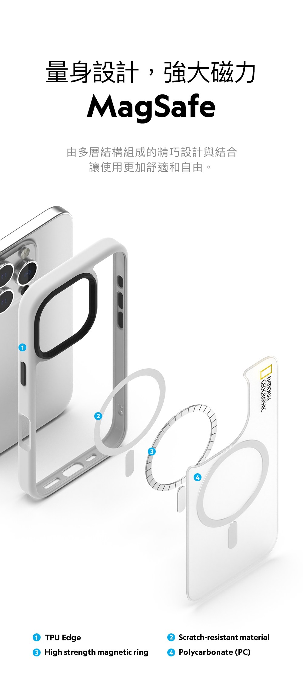 NatGeo Matte 磁吸霧面保護殼 IP16 Plus 磁吸無線充電, 霧白, 1個
