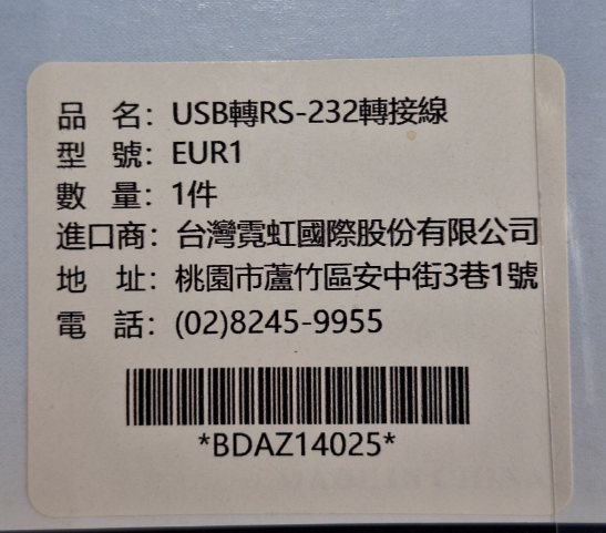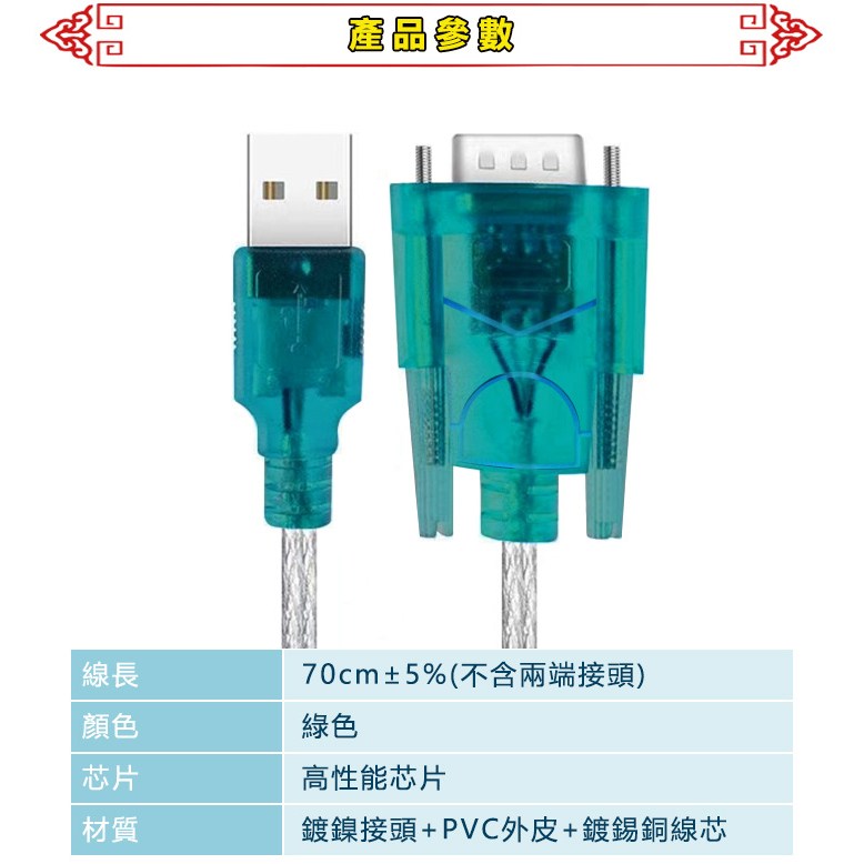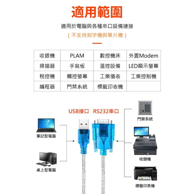 - 連接器類型: USB轉RS-232