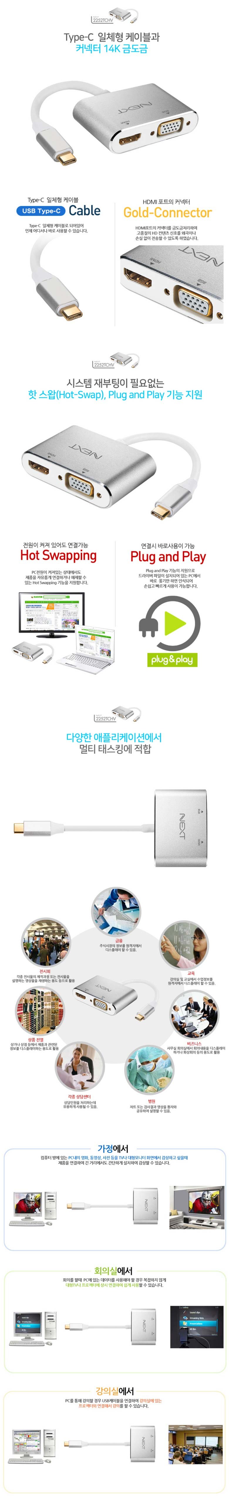 NEXT Type-C轉HDMI+VGA轉接器讓您可以輕鬆地將具備Type-C介面的設備連接到HDMI或VGA顯示器。無論是投影機、電視還是顯示器,都能輕鬆連接,擴展您的視野。鋁製外殼設計不僅時尚,還能有效散熱,確保長時間穩定運行。支援Full HD 1920x1080@60Hz解析度,提供清晰銳利的影像品質。隨插即用的設計,無需安裝驅動程式,方便快捷。非常適合商務簡報、教育教學或家庭娛樂使用。