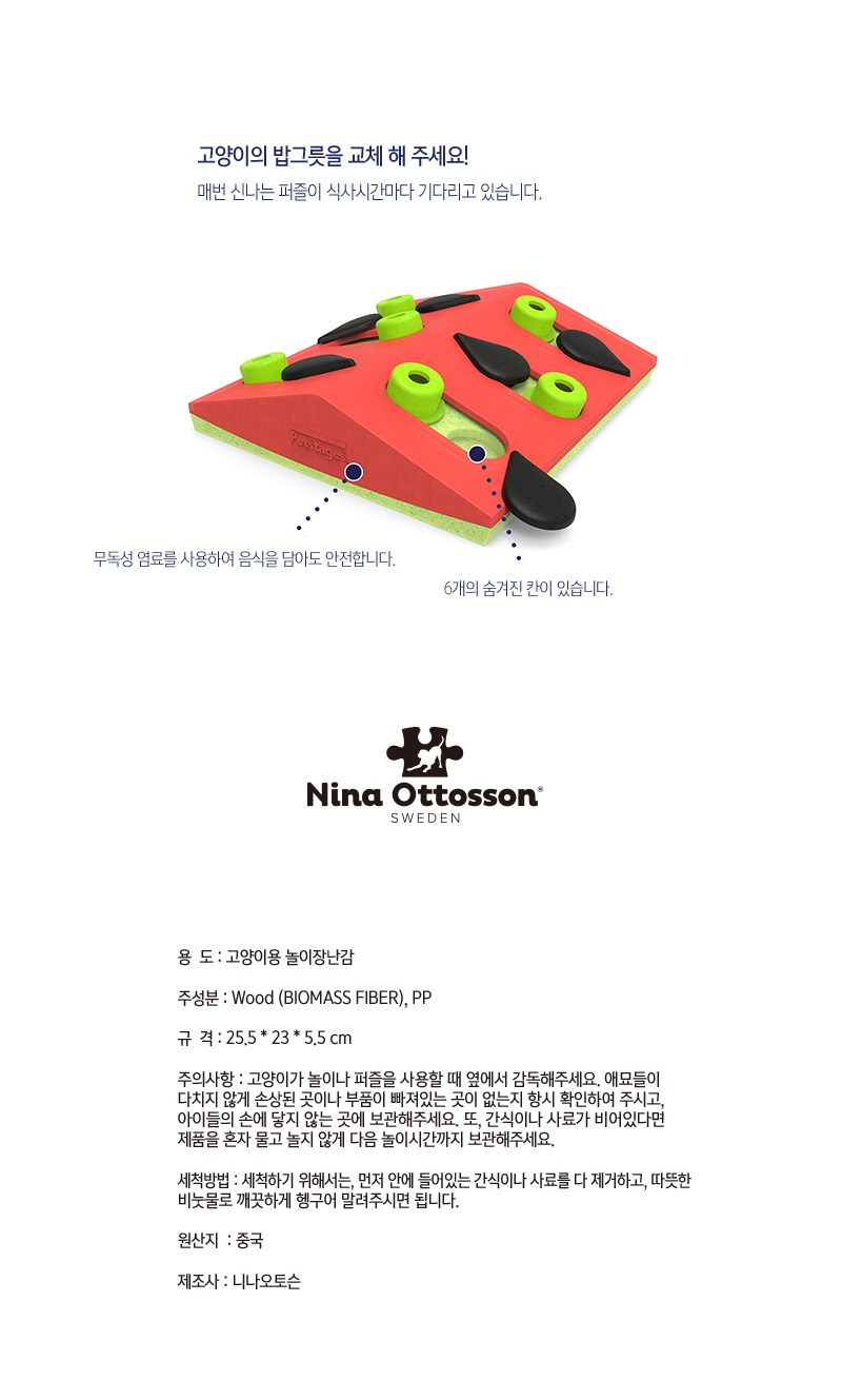 Nina Ottosson 寵物專用西瓜造型藏食益智玩具是一款專為好奇貓咪設計的互動玩具。這款玩具不僅能激發貓咪的狩獵本能,還能提供精神和身體上的活動。透過隱藏零食的設計,鼓勵貓咪動腦筋尋找食物,有效延緩進食速度,有助於消化。玩具難度可調節,讓貓咪在遊戲中持續保持興趣。易於清洗的材質和不可分離的零件,確保貓咪玩耍時的安全。