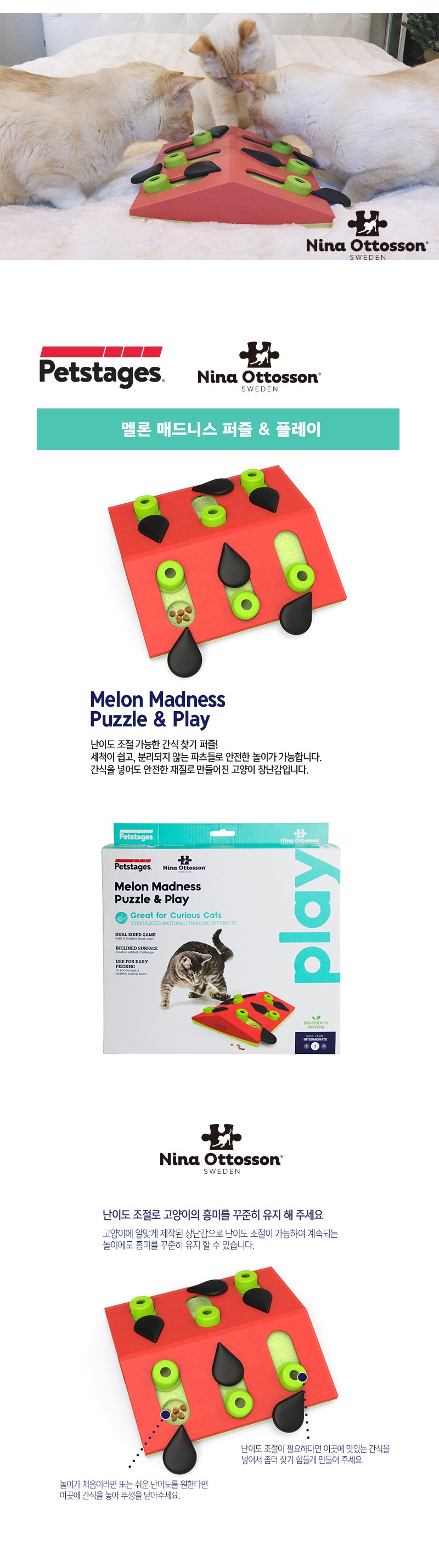 Petstages Nina Ottosson® 西瓜益智玩具,專為好奇貓咪設計!這款互動式益智玩具模擬了貓咪在野外狩獵的場景,激發牠們天生的狩獵本能,讓您的愛貓在遊戲中獲得樂趣和成就感。讓您的愛貓在玩樂中學習,享受挑戰和成就感!