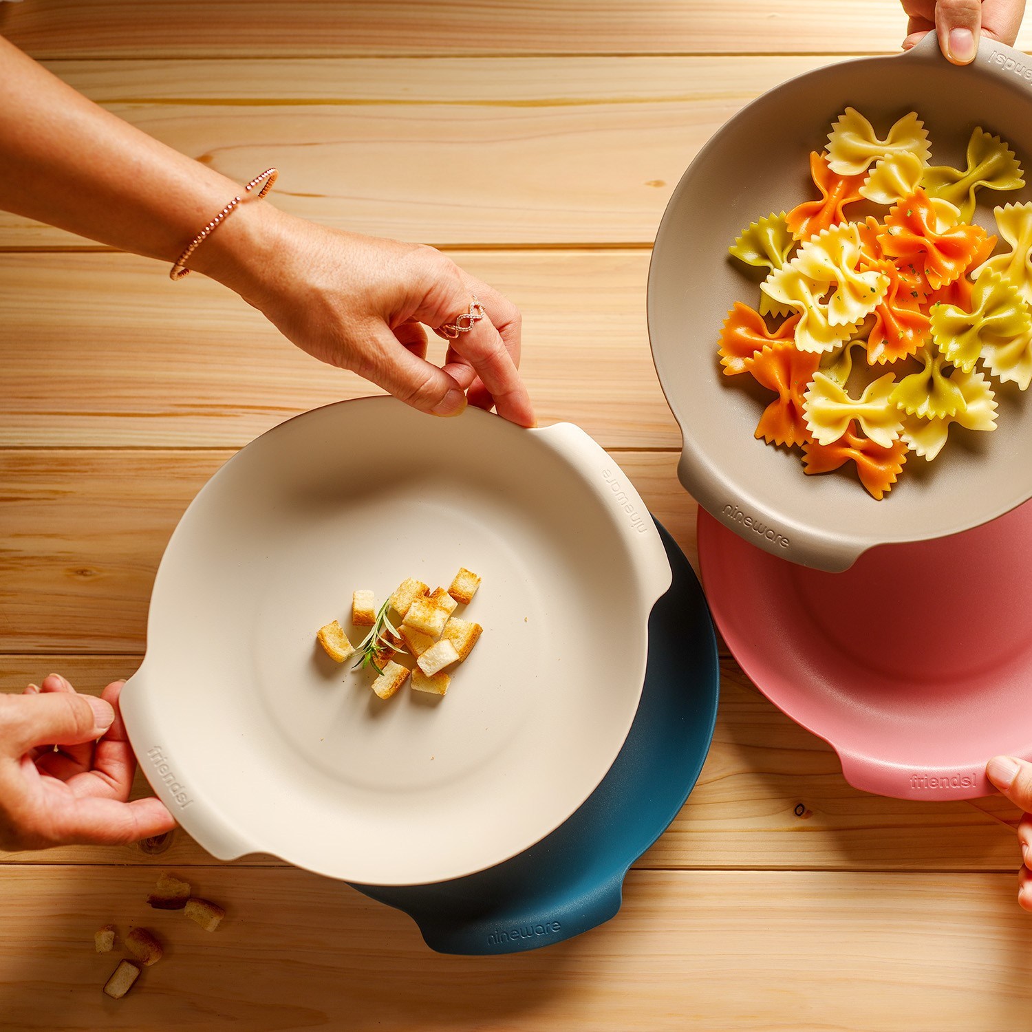 - 藍色與粉色的雙色組合,為您的餐桌增添活潑色彩,讓用餐心情更加愉悅。