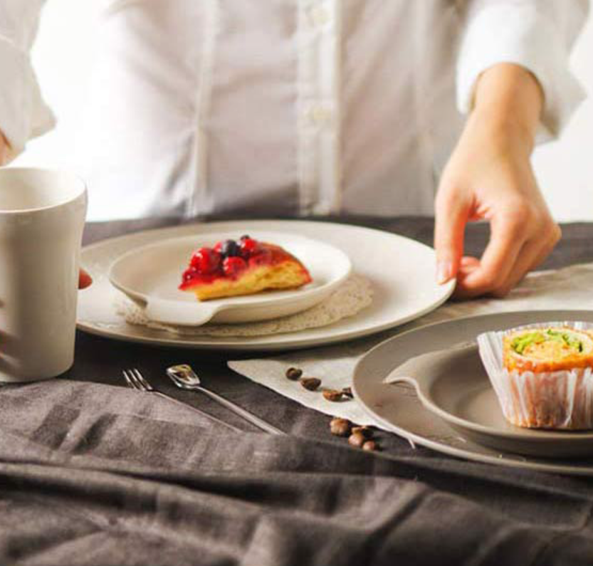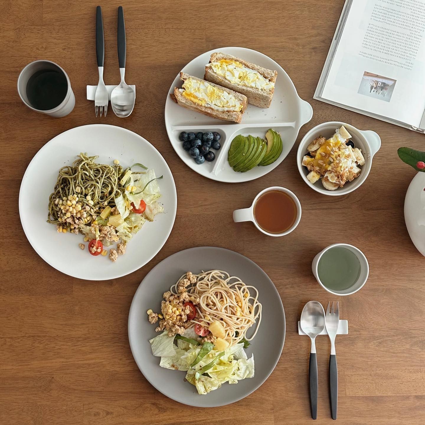 - 象牙白與灰色搭配,為您的餐桌增添現代簡約風格,輕鬆搭配各式料理。