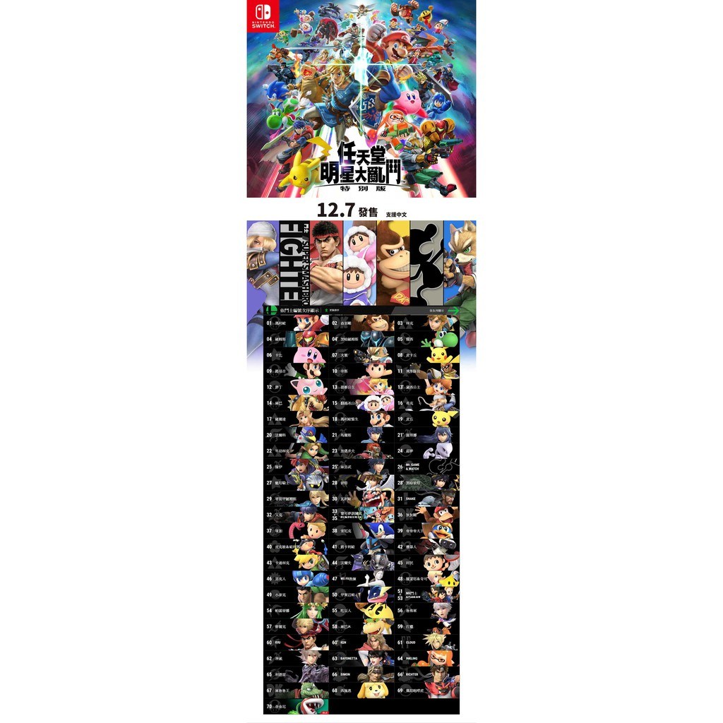 《任天堂明星大亂鬥 特別版》是一款Nintendo Switch上的經典格鬥遊戲,匯集了眾多任天堂及其他遊戲公司的知名角色,讓玩家在各種獨特場景中展開激烈的對戰。此中文版遊戲支援中文字幕,讓玩家更容易理解遊戲劇情和操作方式,享受更佳的遊戲體驗。無論是單人挑戰還是與朋友同樂,都能體驗到無窮的樂趣。遊戲操作簡單易上手,但同時也具備深度和技巧,適合各個年齡層的玩家。快來加入這場明星大亂鬥,與你喜愛的角色一起爭奪勝利吧!