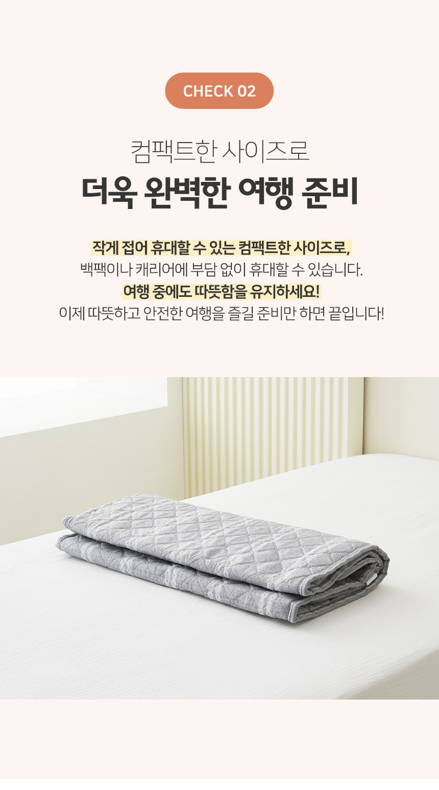 - 輕巧易攜帶的電熱毯組,讓您在旅行中也能享受溫暖舒適的睡眠體驗,告別疲勞。