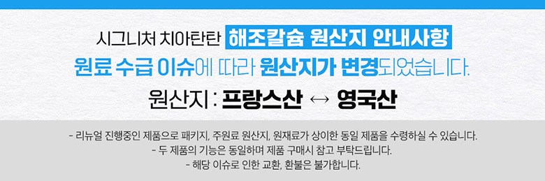 ※ 리뉴얼 진행중인 상품으로 원산지(해조칼슘 프랑스>영국)가 상이한 동일 제품을 수령할 수 있습니다.