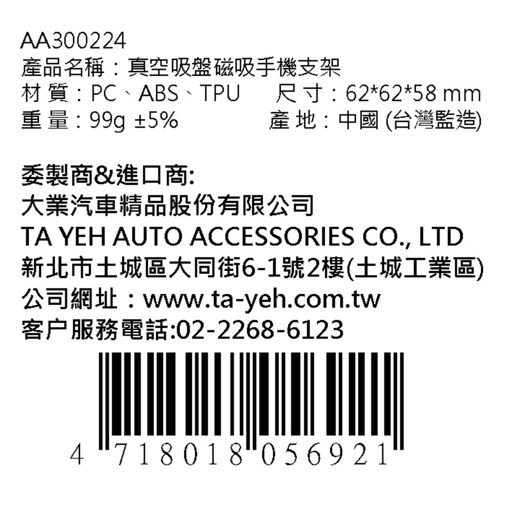 | 國內製造商或負責商名稱 | 大業汽車精品股份有限公司 | 原產地/國 | 中國 |