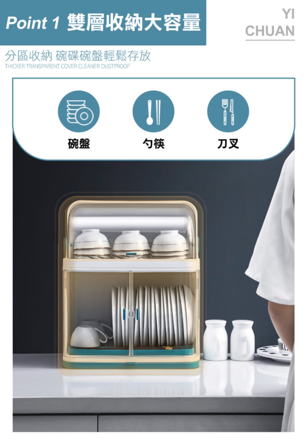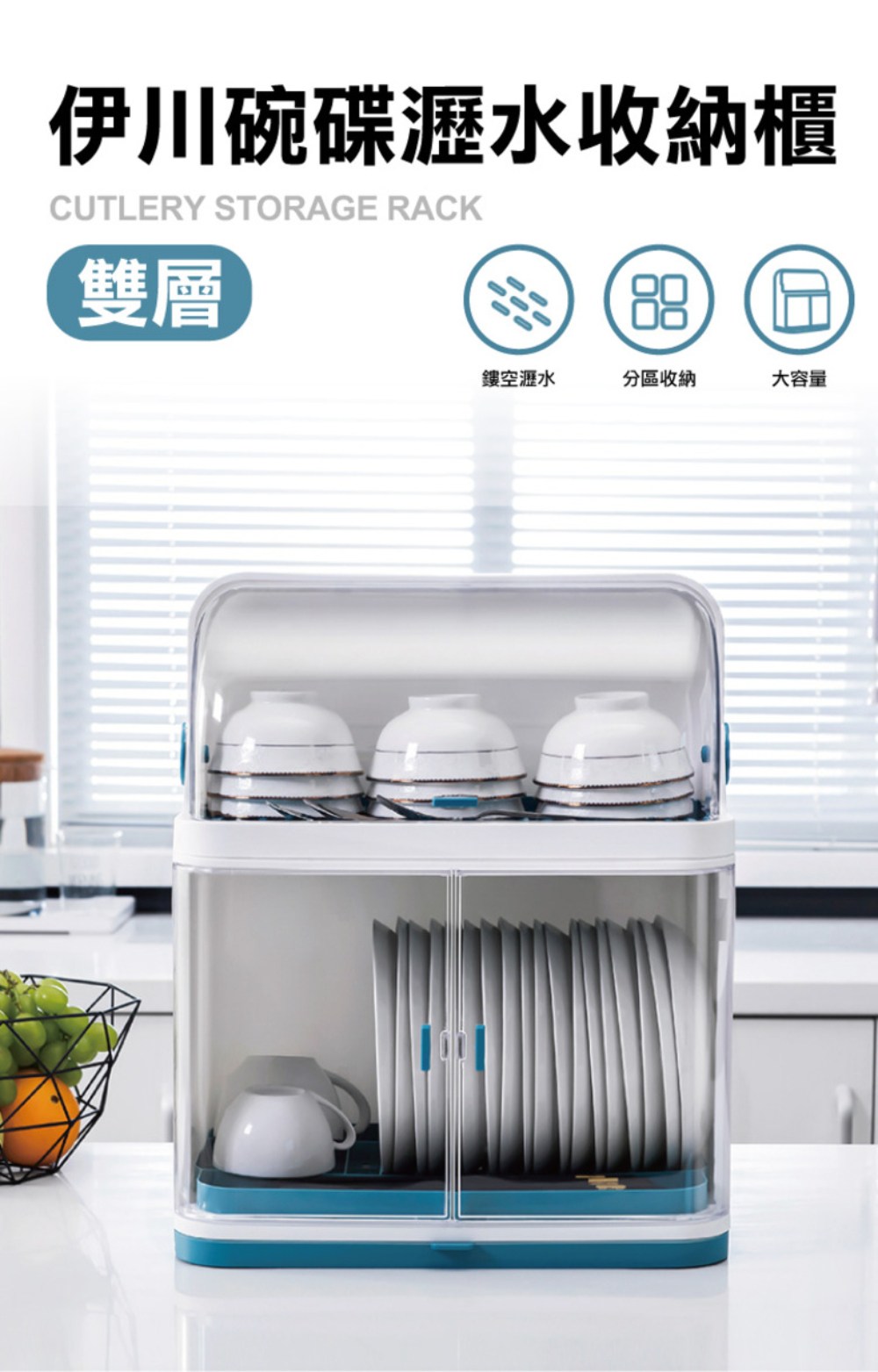 - 雙層設計提供更大容量,輕鬆收納碗盤、餐具,讓廚房空間更整潔有序。