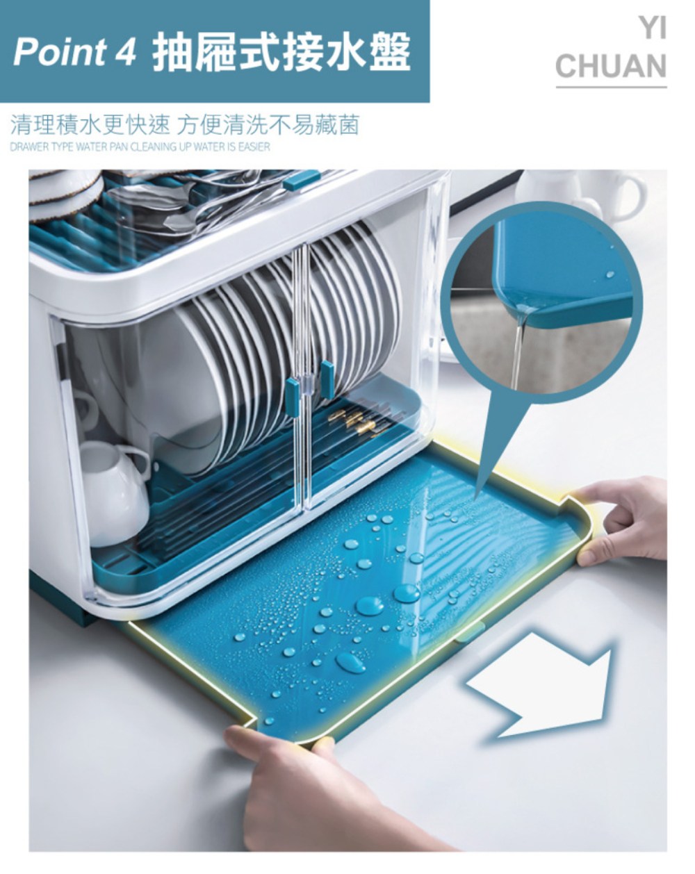 - 抽屜式瀝水盤設計,方便傾倒積水,避免細菌滋生,保持廚房乾爽衛生。