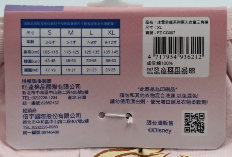 - 幼兒內褲尺寸: XL