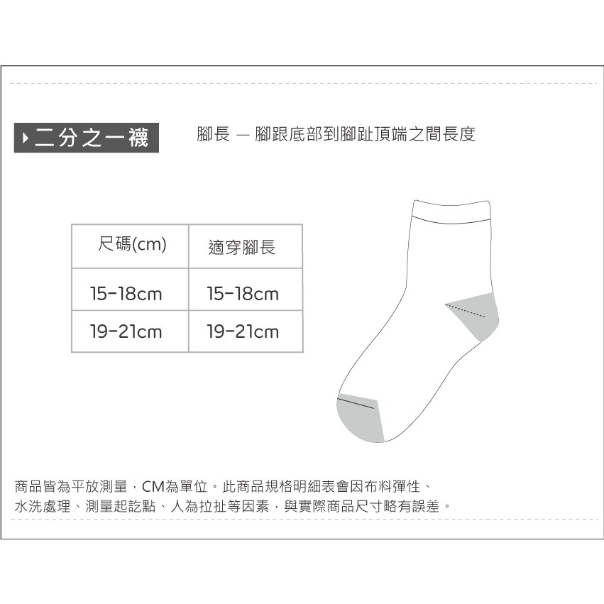 - 襪子長度: 中筒