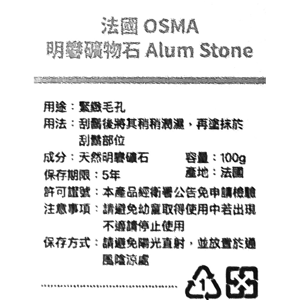 OSMA 明礬礦物石, 100g, 1個