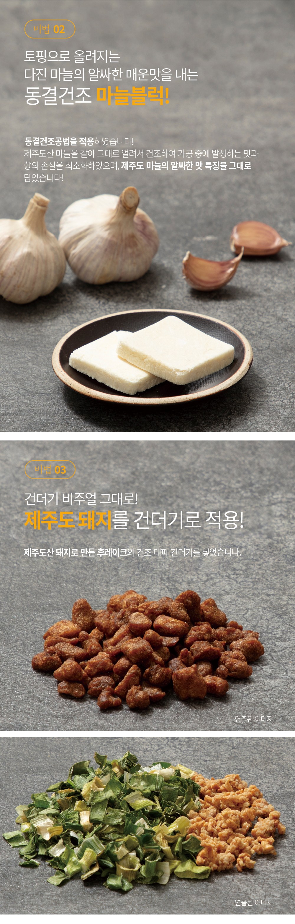 - 湯頭濃郁,濟州豬骨熬製,搭配大蒜提味,在家也能享受道地濟州風味拉麵。