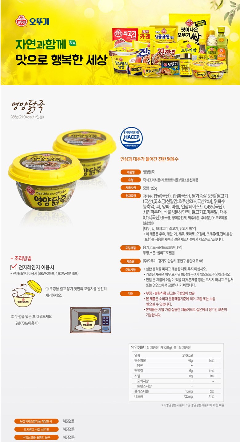 - 嚴選韓國產糯米與梗米,搭配鮮嫩雞胸肉,慢火熬煮,粥體綿密滑順,入口即化,老少咸宜。