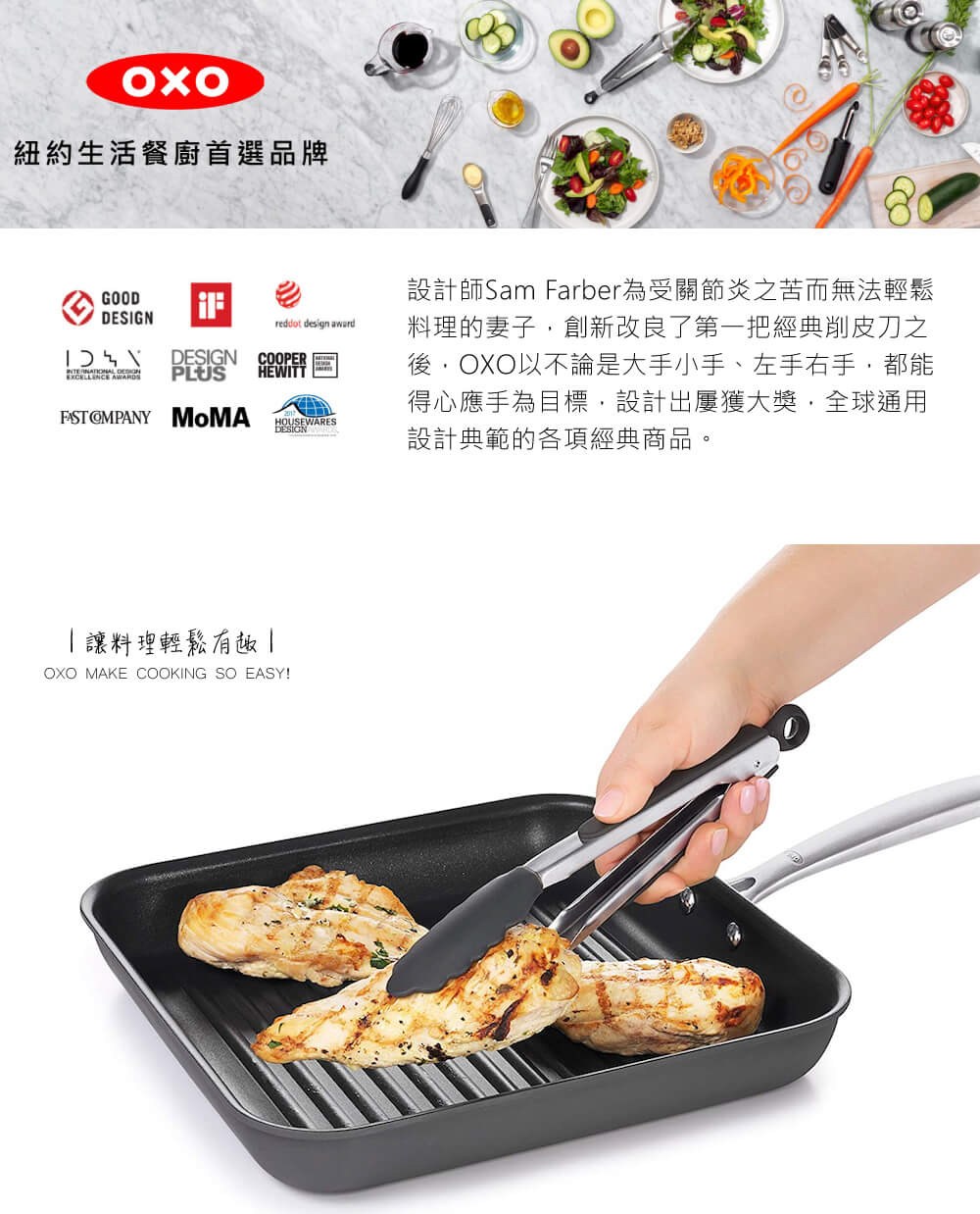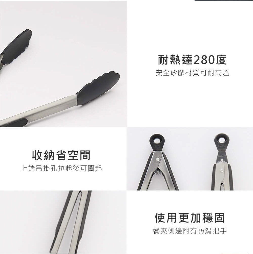 OXO 好好握 12 吋矽膠餐夾是您廚房裡不可或缺的好幫手。這款餐夾採用耐高溫矽膠材質,最高可耐熱 280 度,讓您安心夾取各式熱食,不傷鍋具表面。符合人體工學設計的好好握把,提供舒適穩固的握感,即使長時間使用也不易感到疲勞。12 吋的長度,方便您在烹飪時保持安全距離,避免燙傷。頂端掛孔設計,方便收納,節省空間。無論是翻炒、燒烤還是擺盤,OXO 好好握矽膠餐夾都能輕鬆勝任,讓您的烹飪體驗更加愉快。
