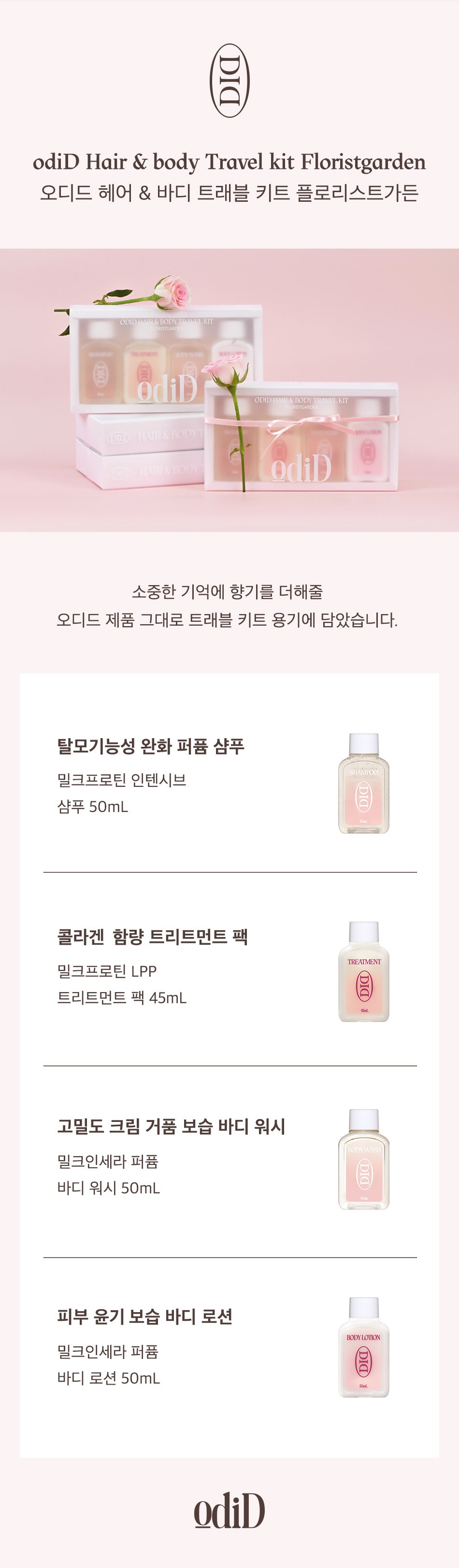 odiD 秀髮 & 身體旅行組花園香,為您的旅程增添一抹迷人香氣。這款旅行套裝包含洗髮精、護髮膜、沐浴乳和身體乳液,讓您在旅途中也能享受完整的清潔與保養。花園香氛帶來清新甜美的白玫瑰氣息,讓您彷彿置身於花園之中。小容量設計方便攜帶,無論是旅行、健身或游泳,都能輕鬆帶著走。讓 odiD 旅行組為您的每一次出行都留下美好的記憶。
