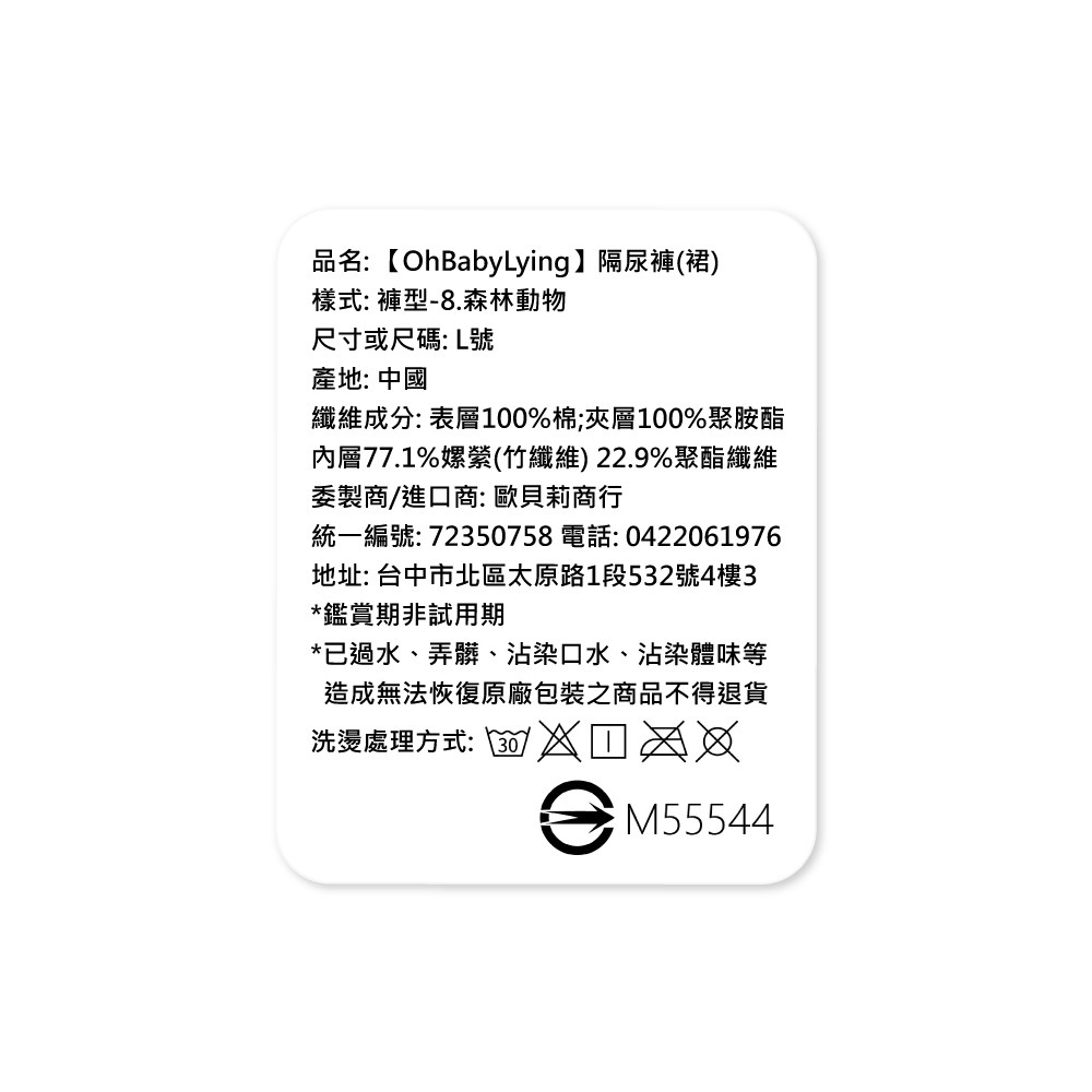 呵護寶寶嬌嫩肌膚,就選OhBabyLying寶寶高腰防水隔尿褲!這款L尺寸的隔尿褲,採用柔軟舒適的棉布材質,搭配彈性纖維腰圍,溫柔貼合寶寶身形,活動自如不受限。內層防水布設計,有效阻隔尿液滲漏,保持乾爽舒適,讓寶寶告別紅屁屁。森林動物圖案,增添童趣,讓寶寶穿得開心又可愛。高腰設計,加倍呵護寶寶腹部,無論睡覺或玩耍,都能安心使用,是寶寶戒尿布時期的最佳選擇。